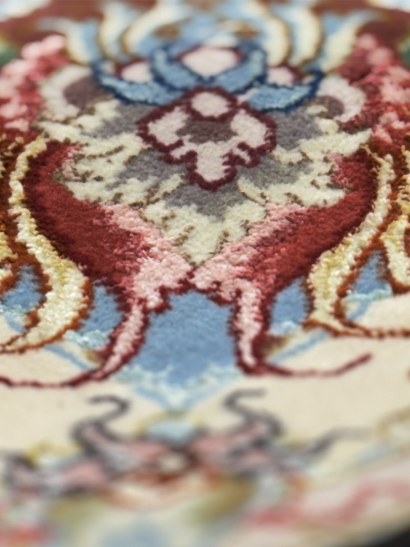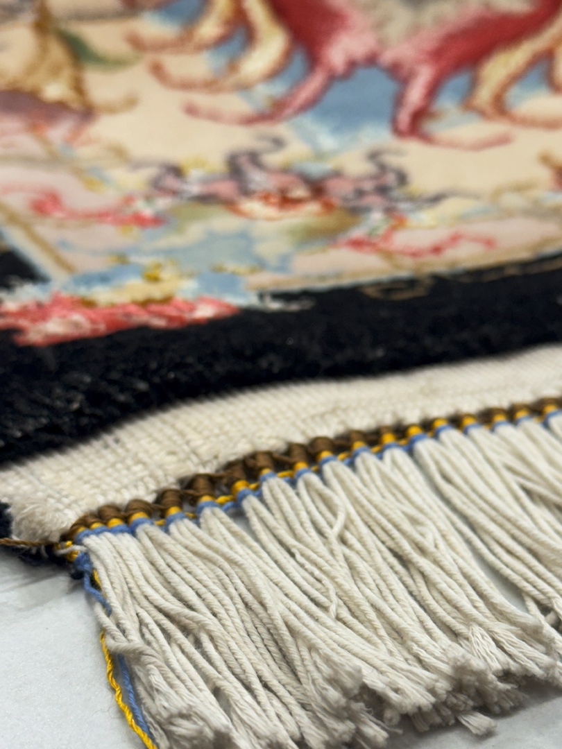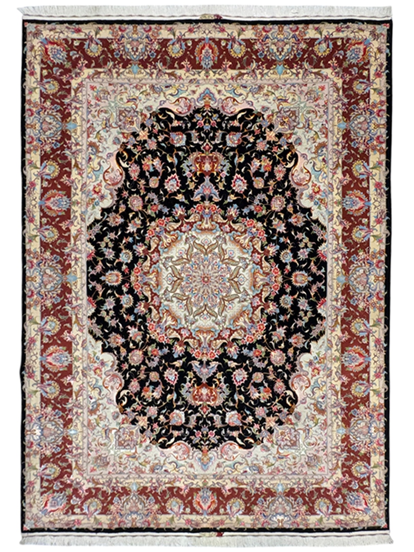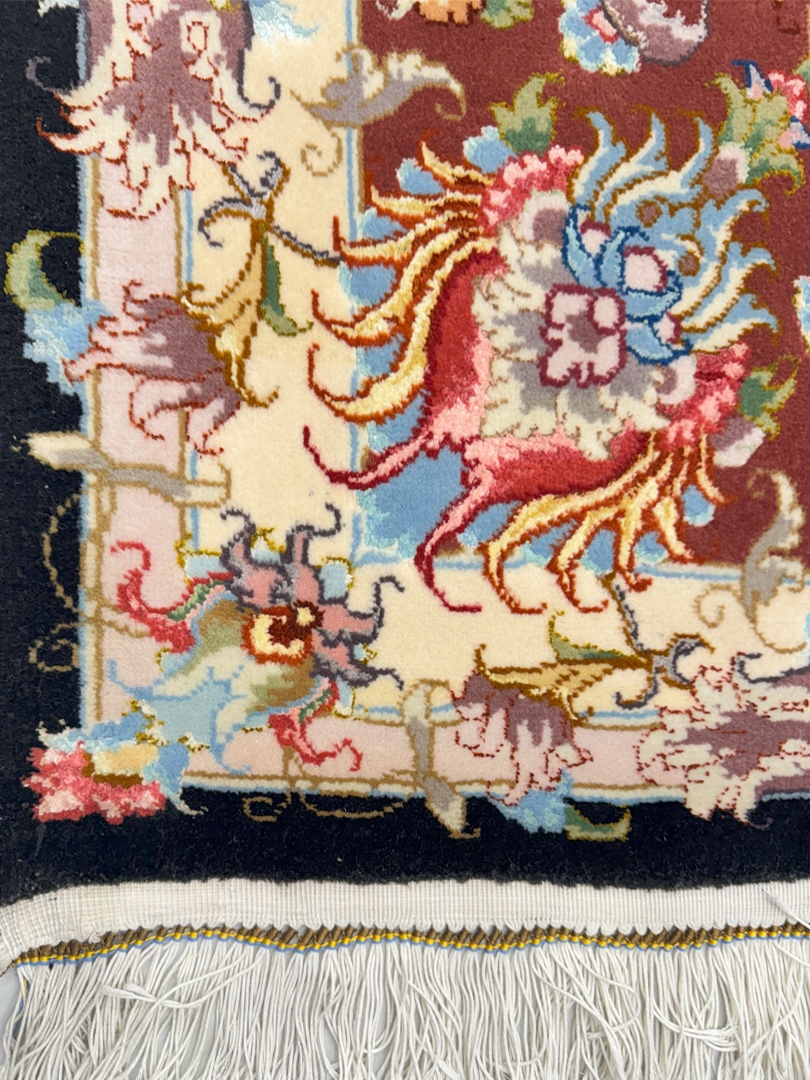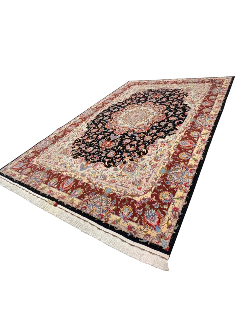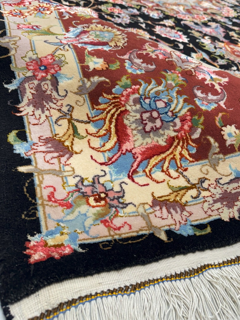 دست بافت تبريز 250*350 مستطيل خطيبي 40 رج کرک و ابريشم مشکي مسي 20 Kg
