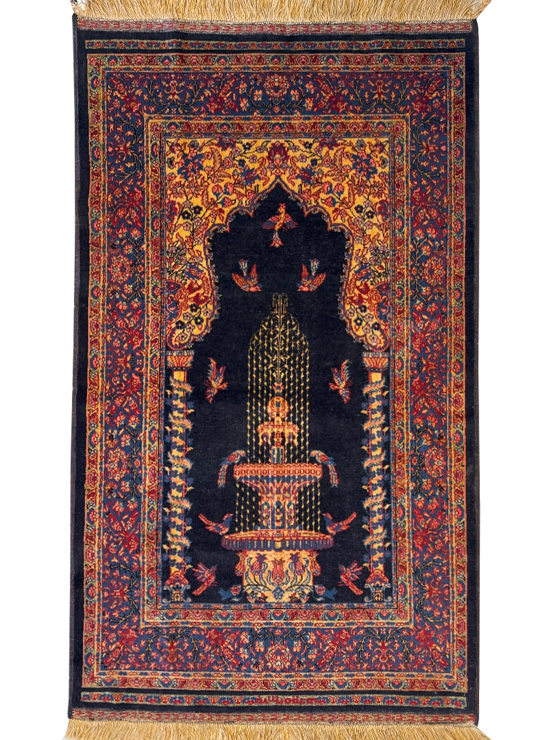 فرش دست بافت مستطیل فواره محرابی 40 رج پشم دست ریس کد 200358