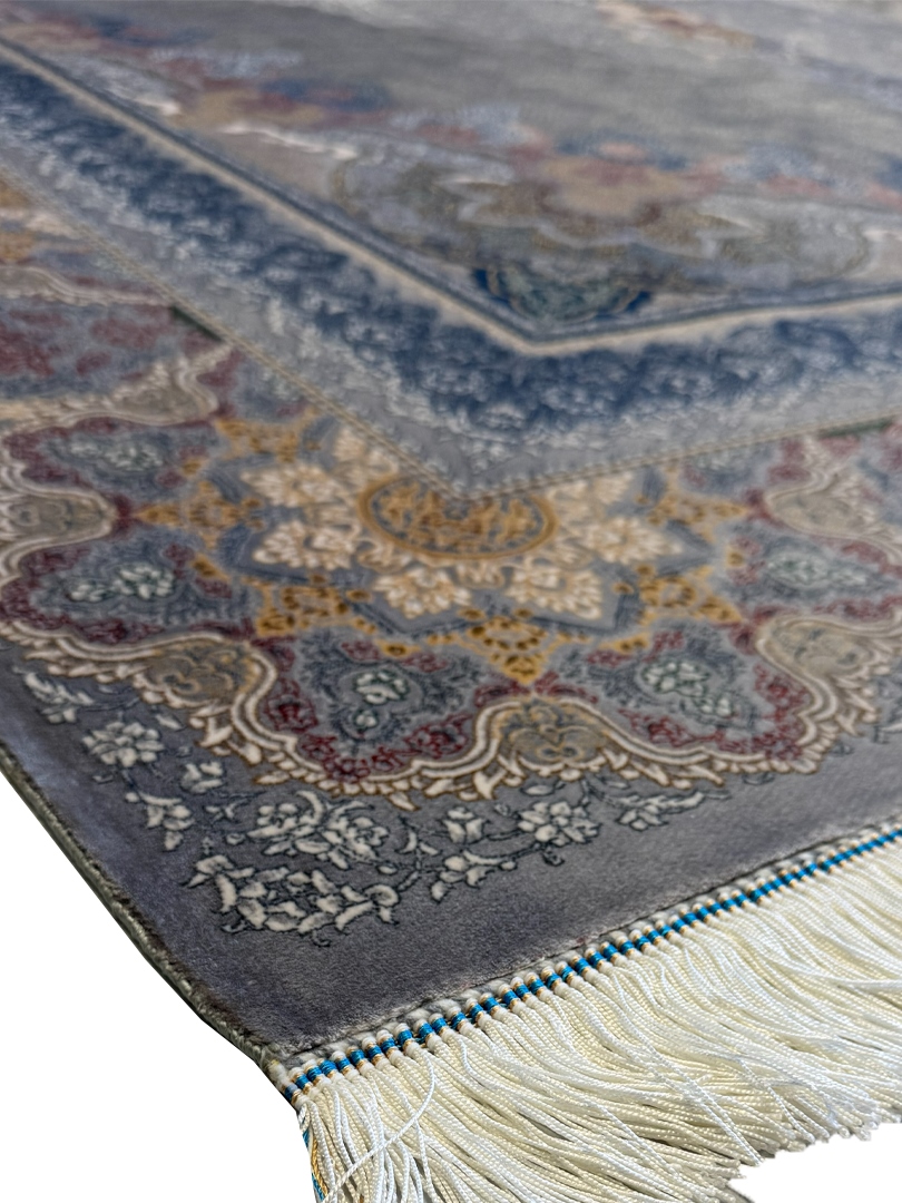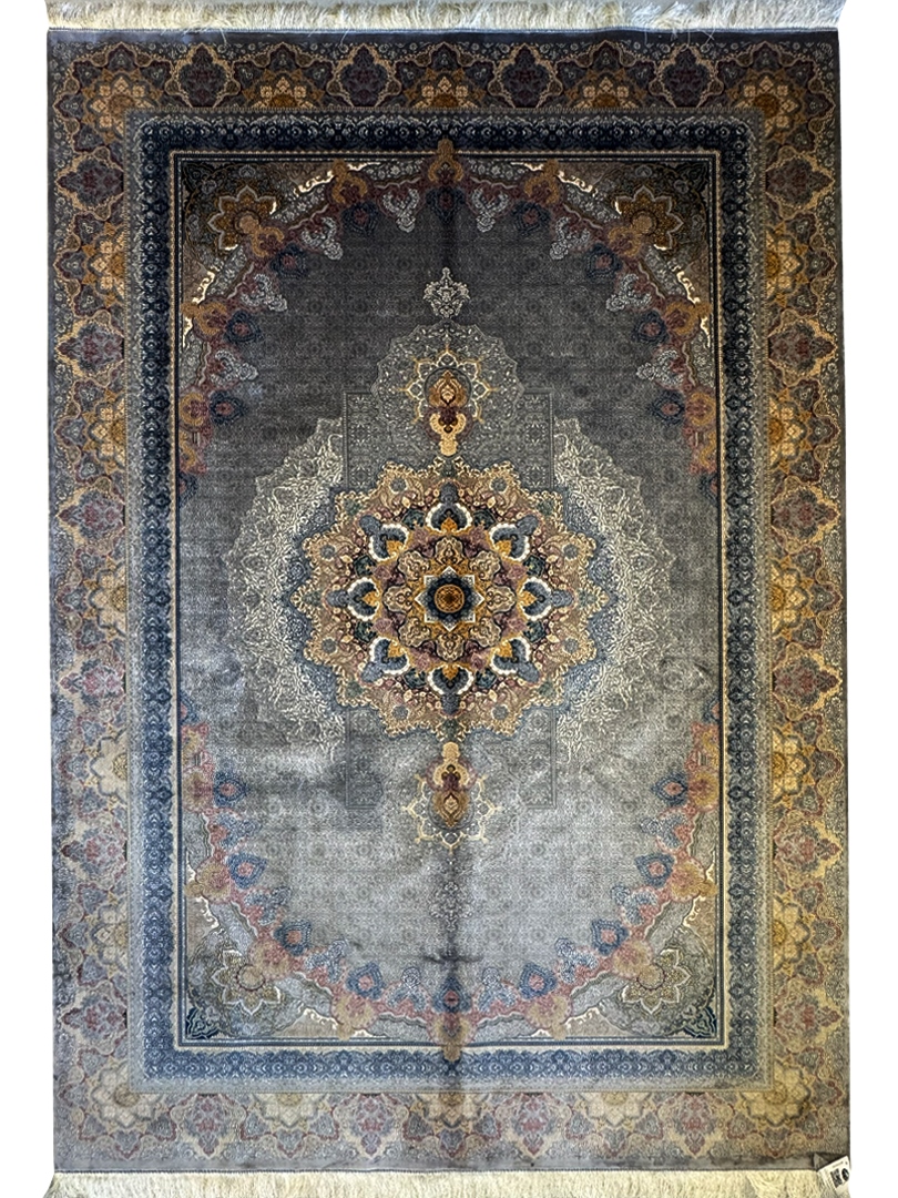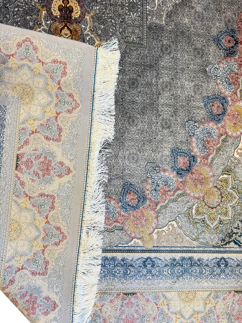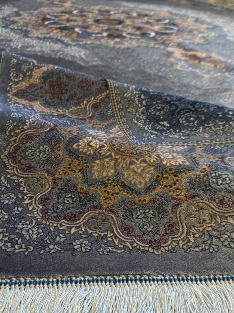 ربات بافت تمام ابريشم 2 نخ 200*300 مستطيل لچک ترنجي محو بافي 70 رج کرک و بمبوسيلک طوسي الوان طوسي الوان 25 Kg