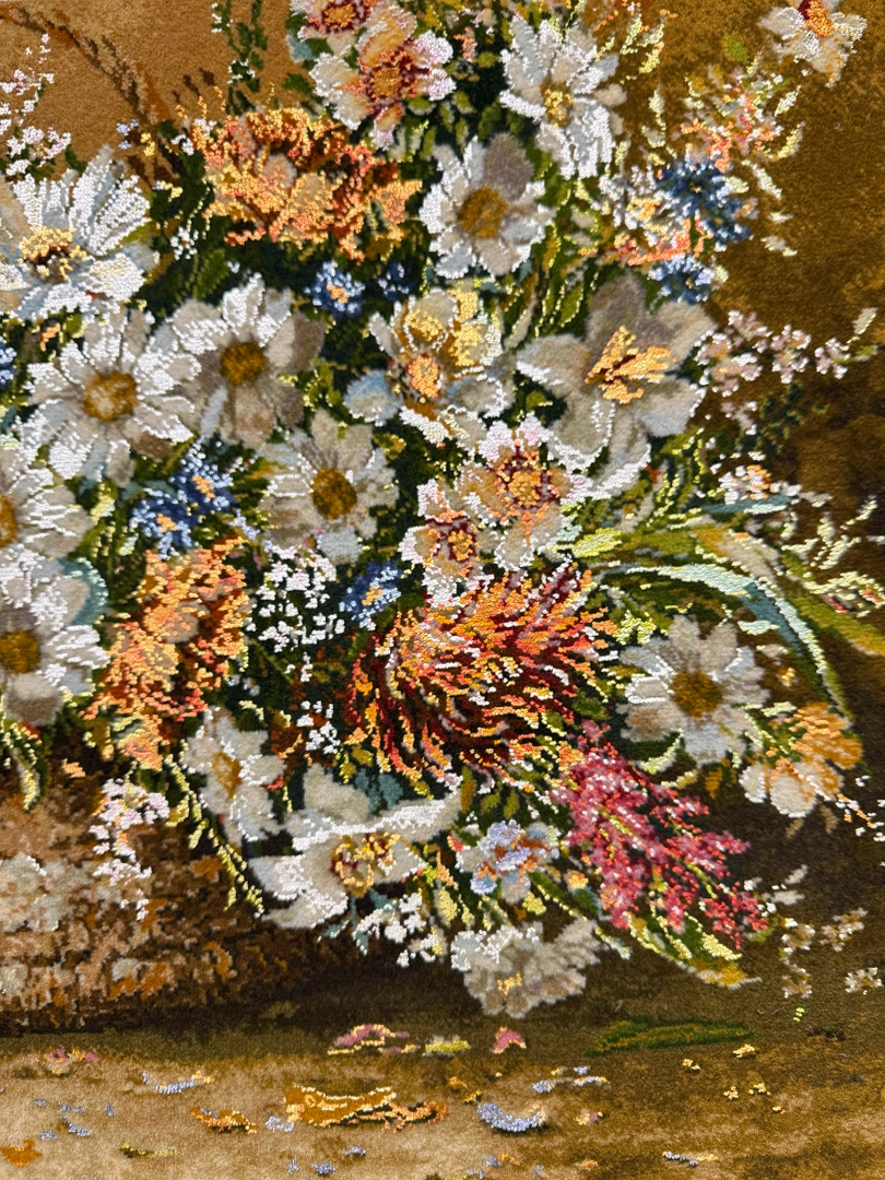 تابلو فرش تبريز 83*60 مستطيل گل ملينا 50 رج کرک و ابريشم الوان 1.5 KG
