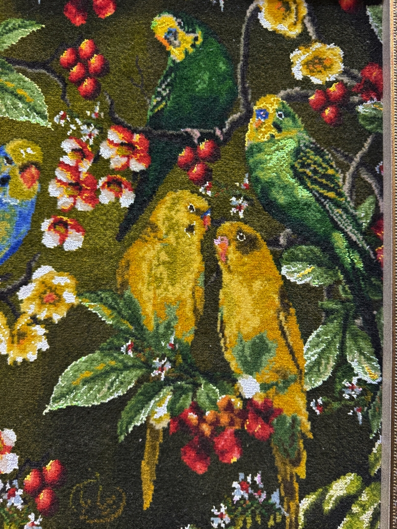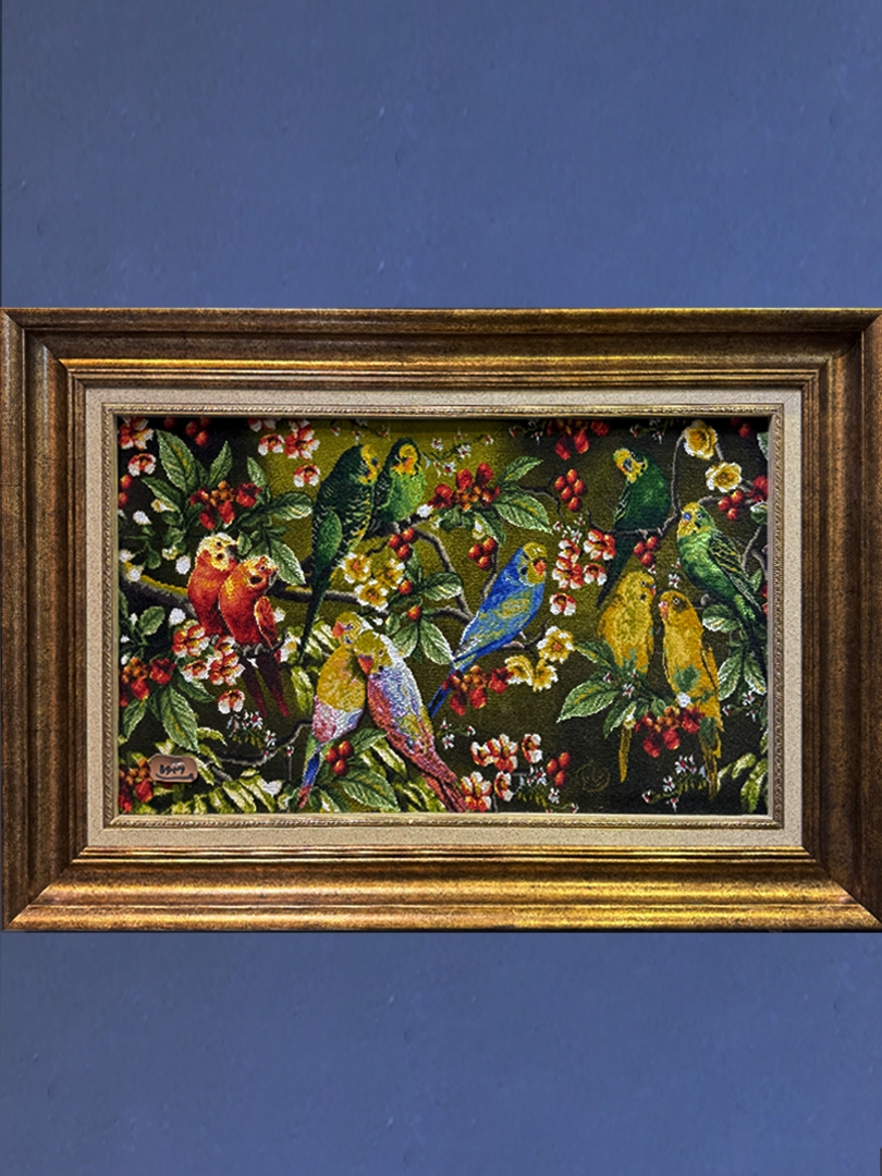 تابلو فرش تبريز 41*68 مستطيل گل و پرنده 50 رج کرک و ابريشم الوان 1.5 KG