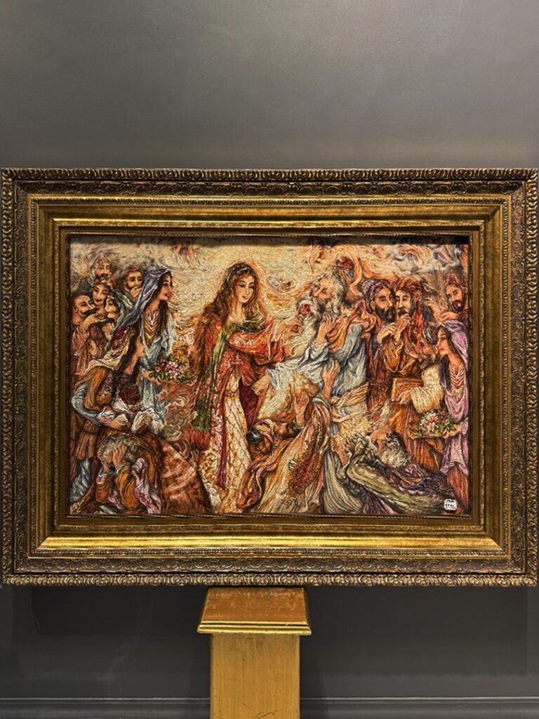 تابلو فرش دست بافت تبریز شیخ صنعان 50 رج کرک و ابریشم کد 2003256