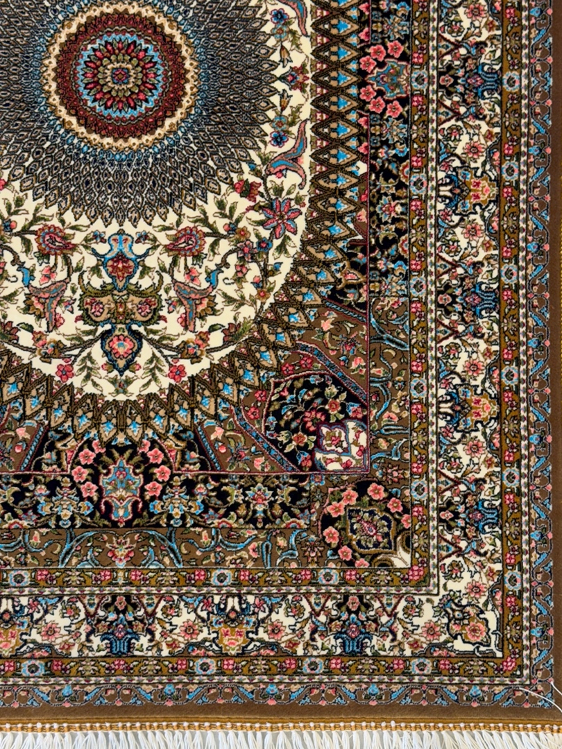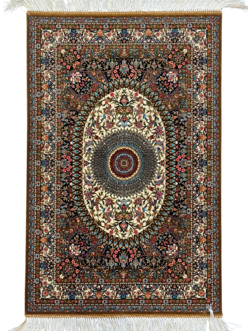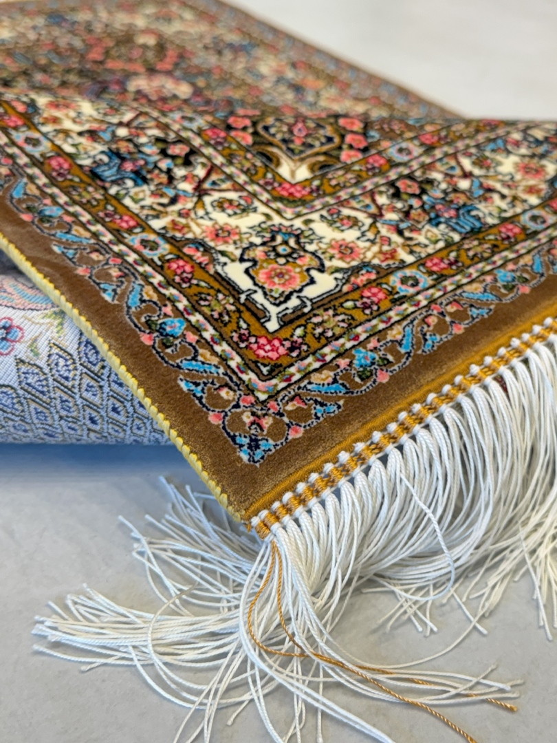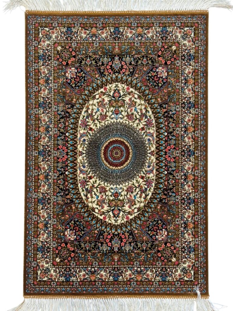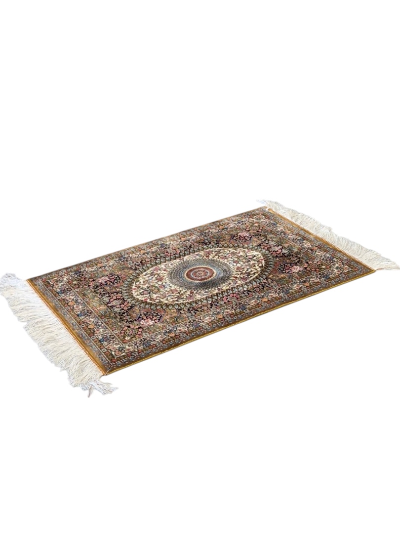 ربات بافت قم 60 * 90 مستطيل اسليمي 70 رج ابريشم و بنبوسيلک کرم کرم kg1