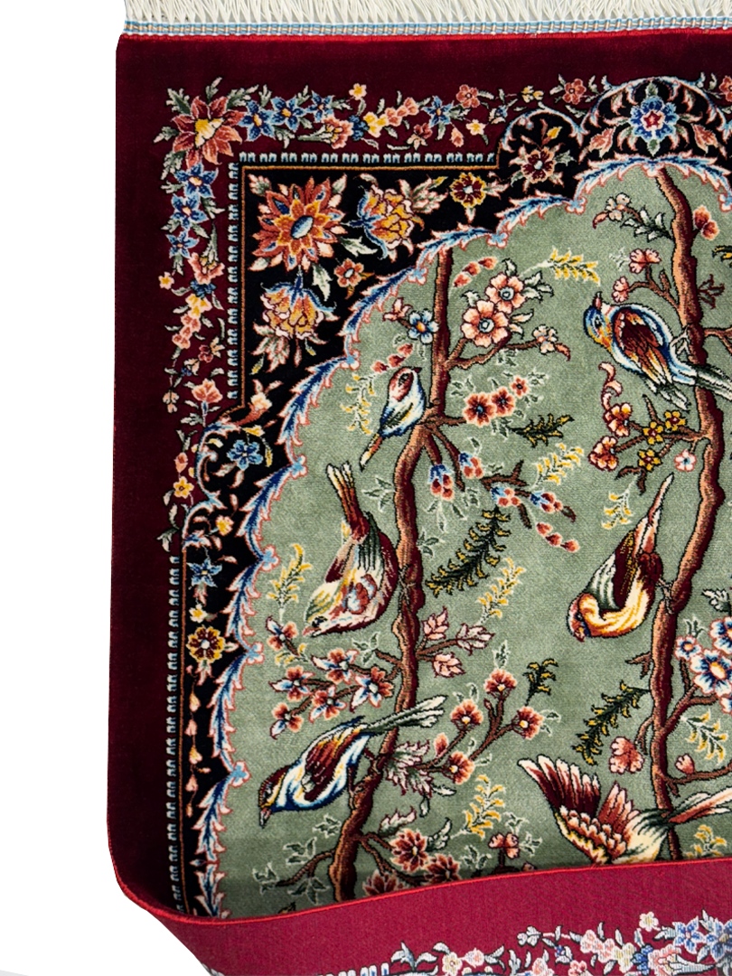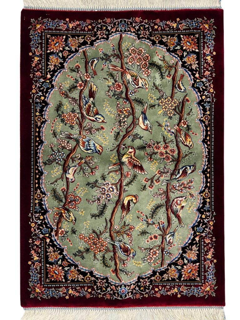 ربات بافت قم 60*90 مستطيل چهل طوطي قابي 70 رج ابريشم و بنبوسيلک فيلي شرابي kg1