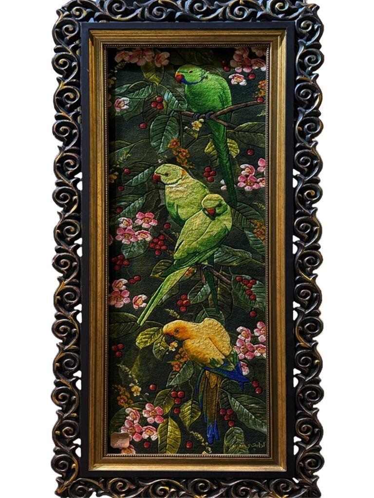 تابلو فرش مستطیل باغ طوطی 50 رج کرک و ابریشم کد 2003269