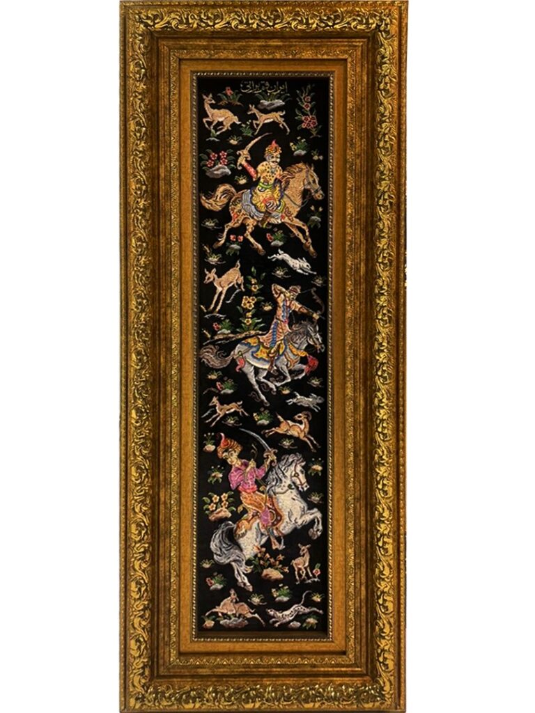 فرش شادکام > فروشگاه > تابلو فرش > تابلو فرش مستطیل شکارگاه 70 رج تمام ابریشم کد 2004072