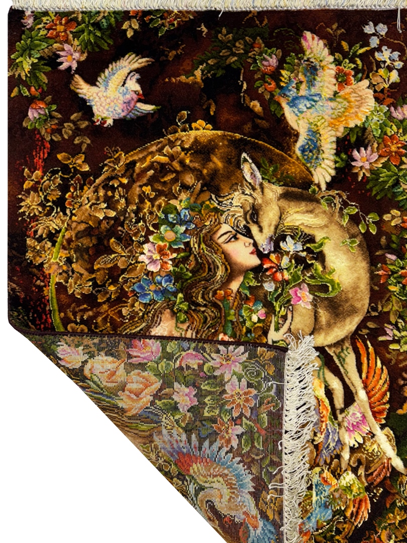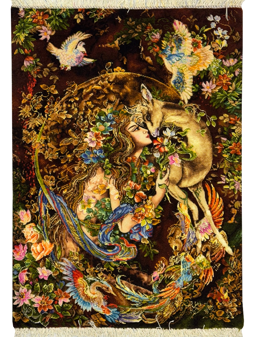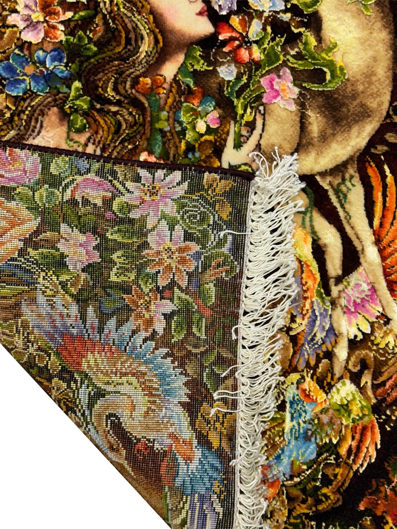 تابلو فرش تبريز 85*60 مستطيل مينياتور 50 رج کرک و ابريشم الوان kg1