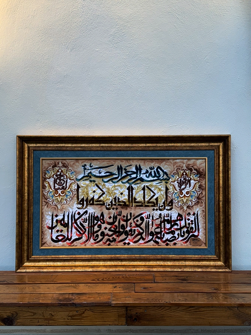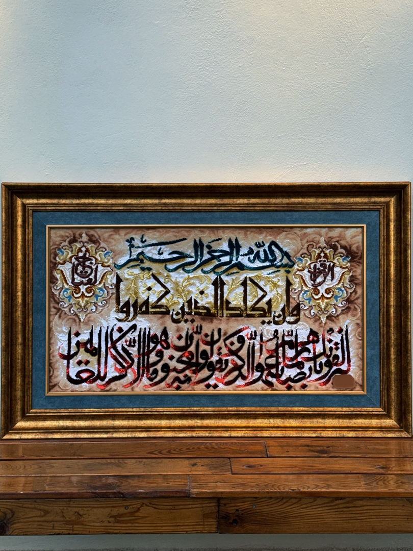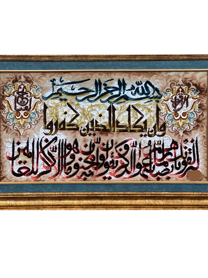 تابلو فرش تبريز 45*82 مستطيل وان يکاد 50 رج کرک و ابريشم کرم الوان الوان 1.5 KG