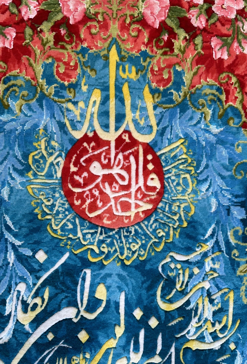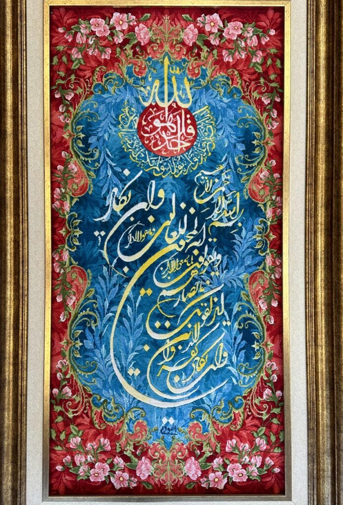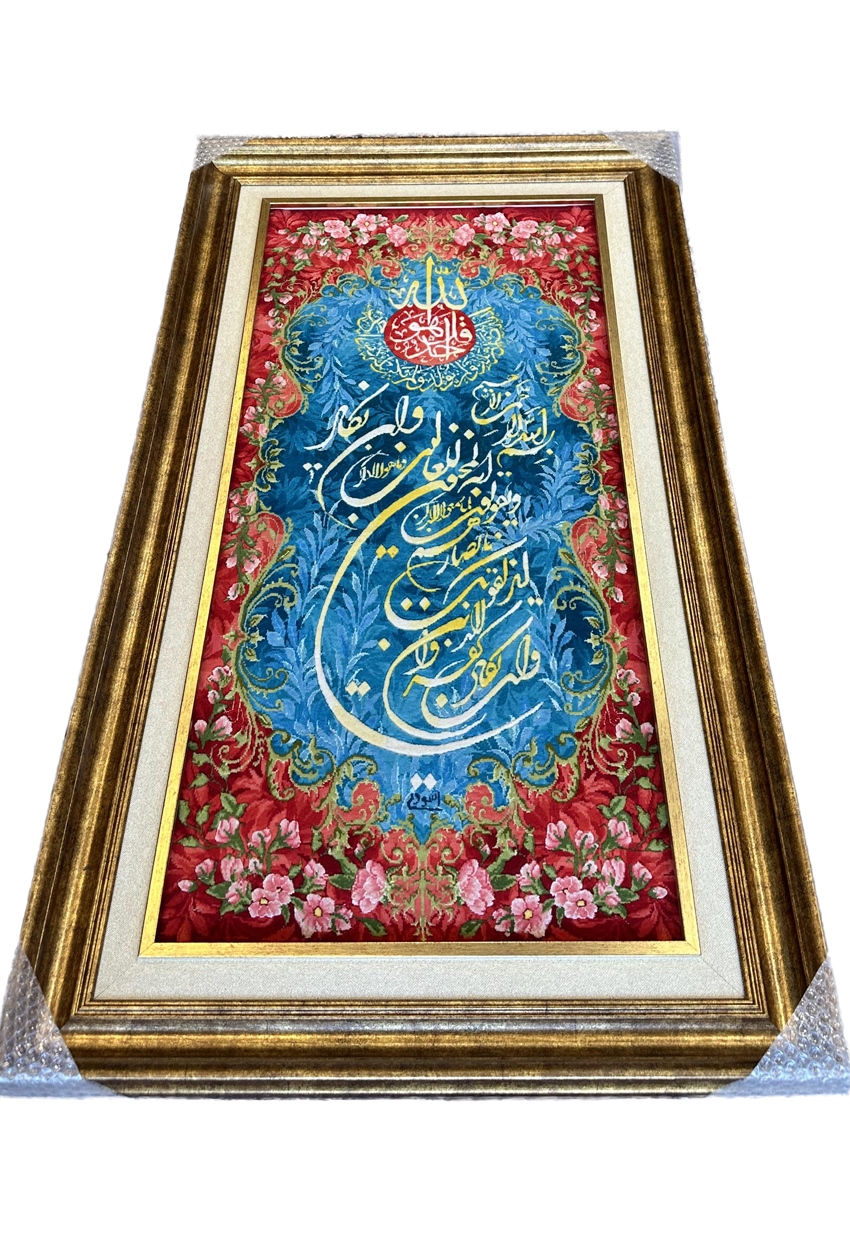 تابلو فرش تبريز 110*50 مستطيل و ان يکاد 50 رج کرک چله ابريشم سبز قرمز 2 Kg