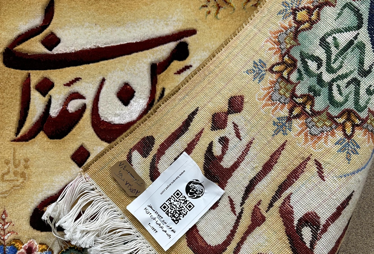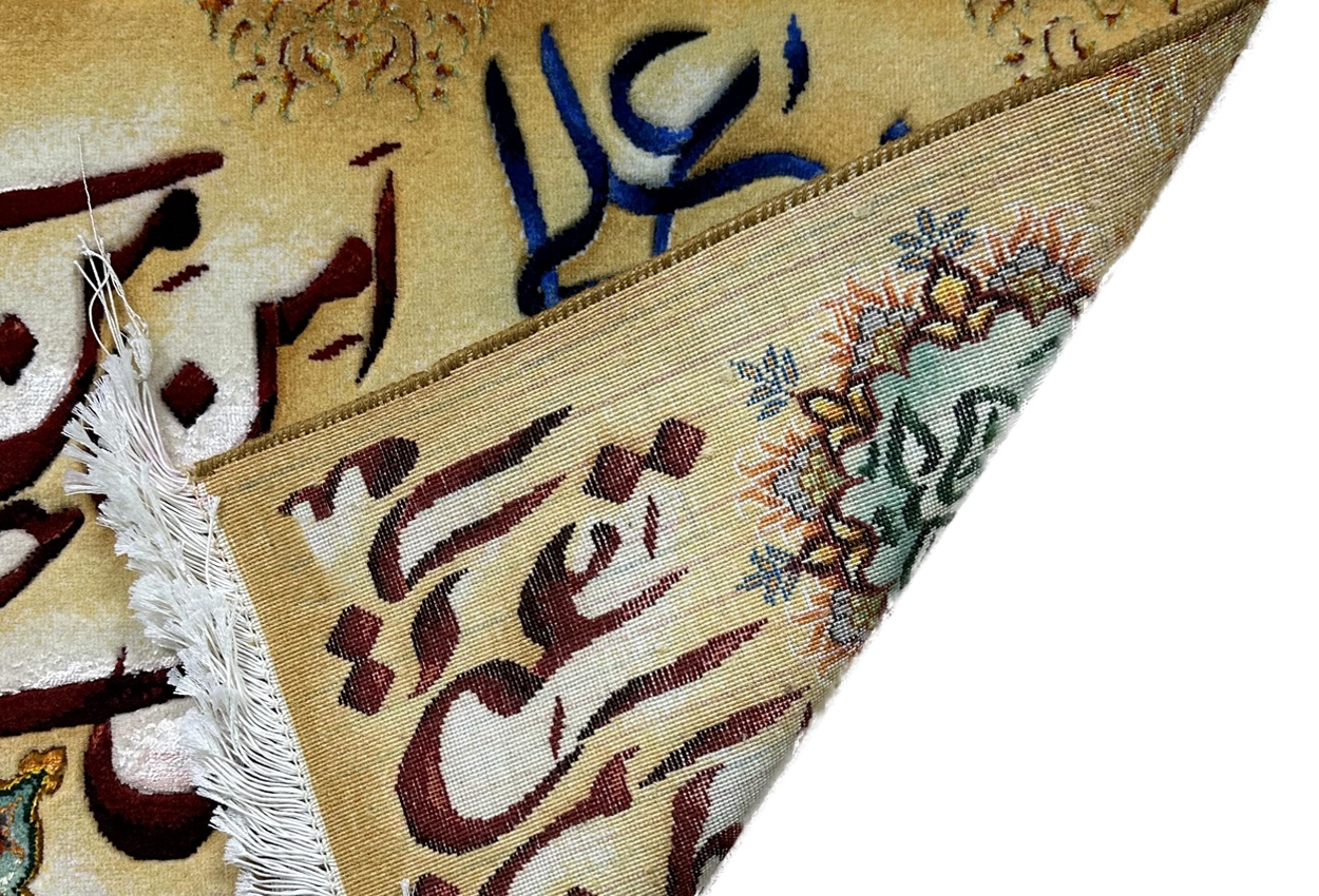 تابلو فرش تبريز 73*52 مستطيل ولايت علي (قرباني) 50 رج کرک و ابريشم الوان الوان 2 Kg