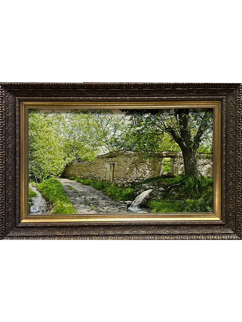 تابلو فرش تبريز 97*57 مستطيل کوچه باغ 50 رج کرک و ابريشم الوان الوان 2 Kg