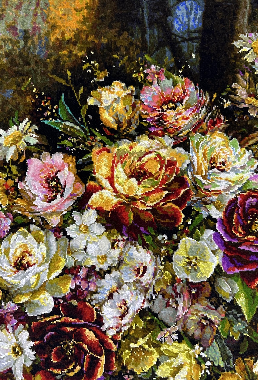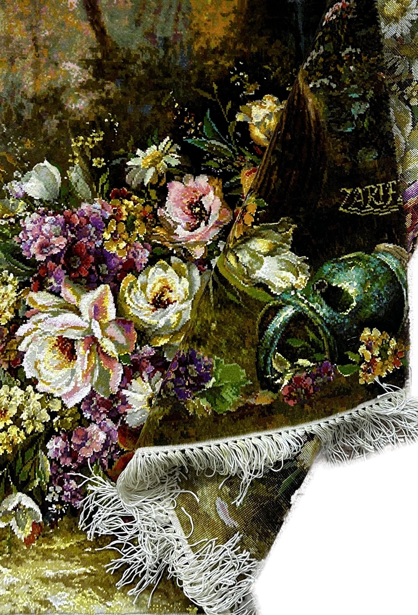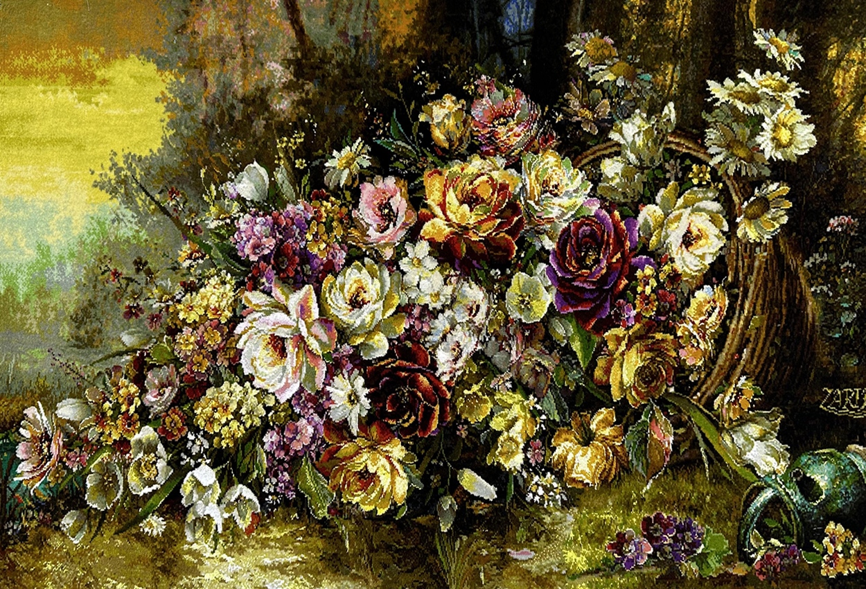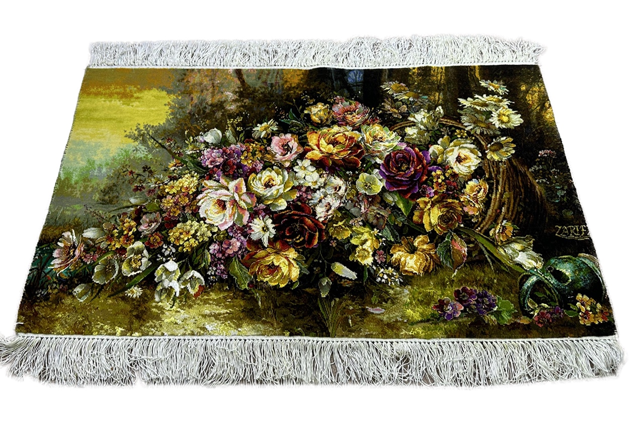 تابلو فرش تبريز 119*66 مستطيل گل وارونه 50 رج کرک چله ابريشم الوان الوان 3 Kg