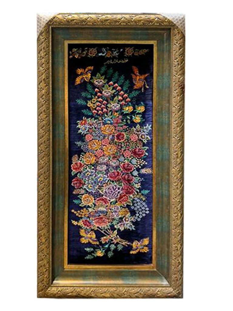 تابلو فرش مستطیل گل 60 رج تمام ابریشم کد 2002376