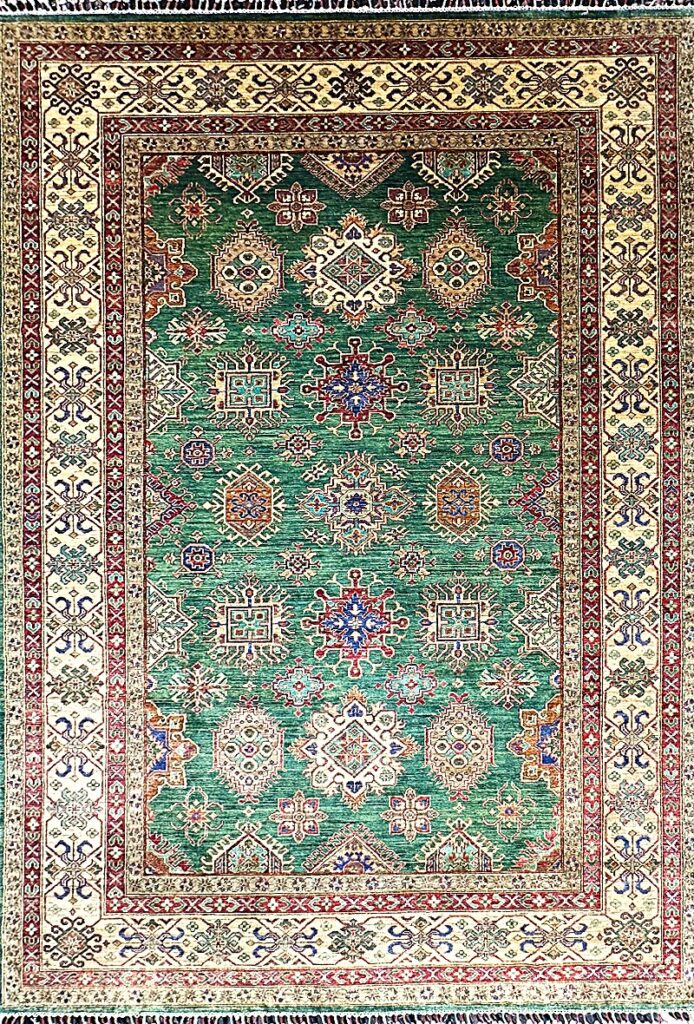 دست بافت سلطان آباد 200*300 مستطيل * هندسي 30 پشم دست ريس سبز کرم-زرشکي 25 Kg