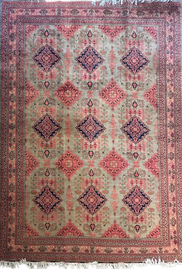 دست بافت خان محمدي 250*350 مستطيل خان محمدي 30 کرک مرينوس کرم خاکي مشکي 35 Kg