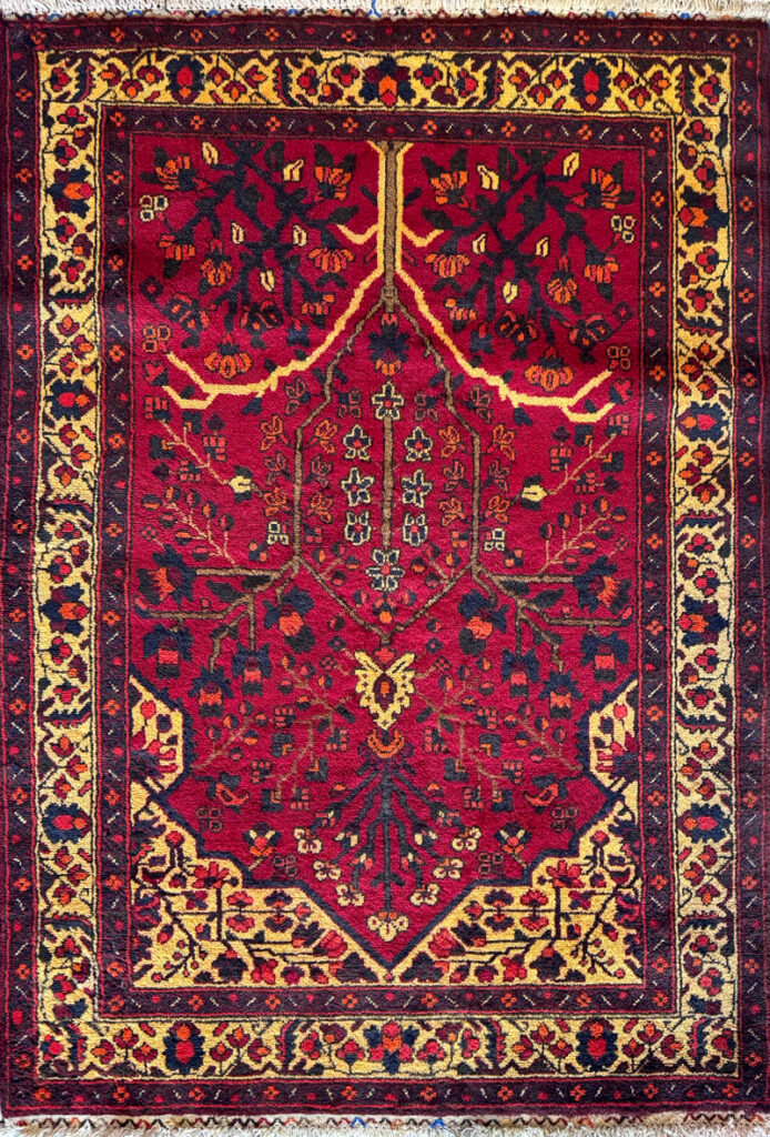دست بافت قم 100*150 مستطيل درختي 30 رج کرک براق لاکي مشکي لاکي و زرد 5 Kg