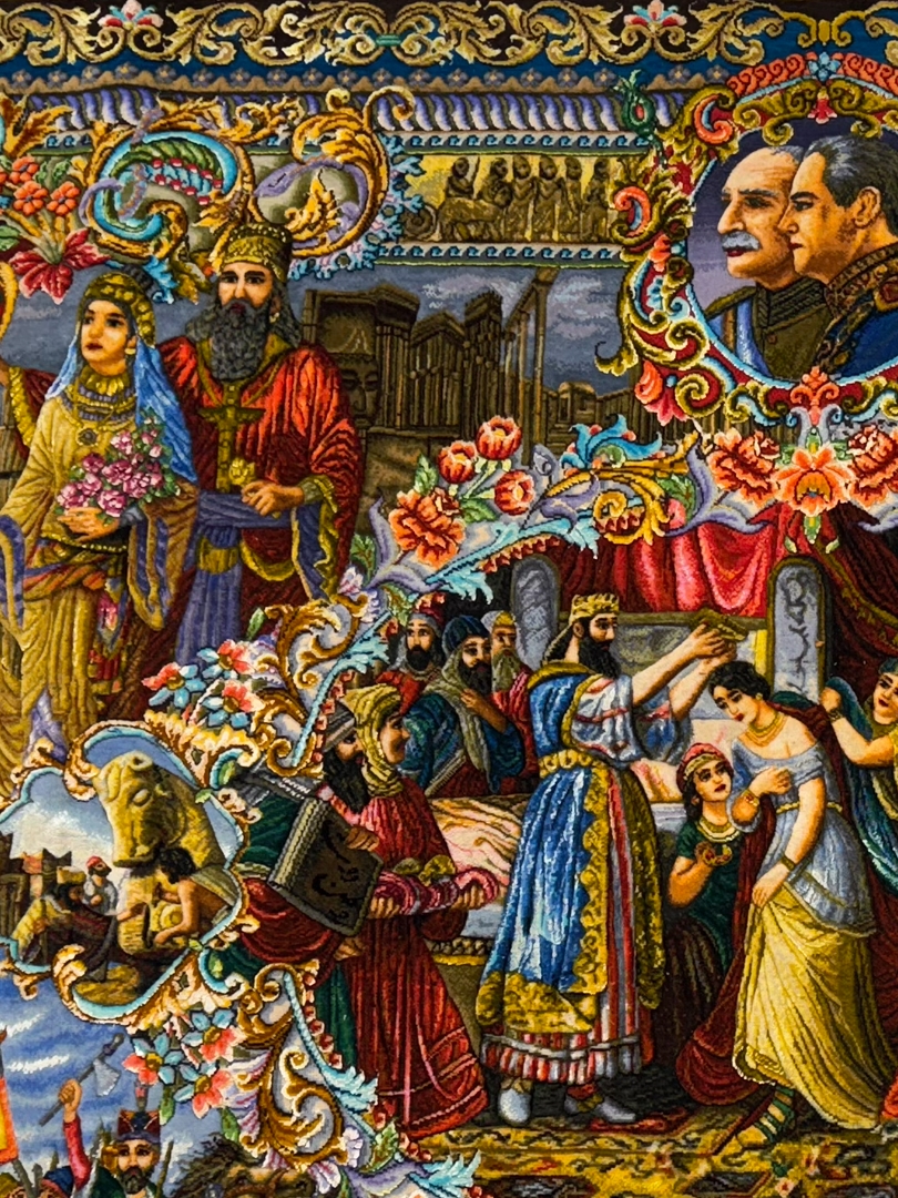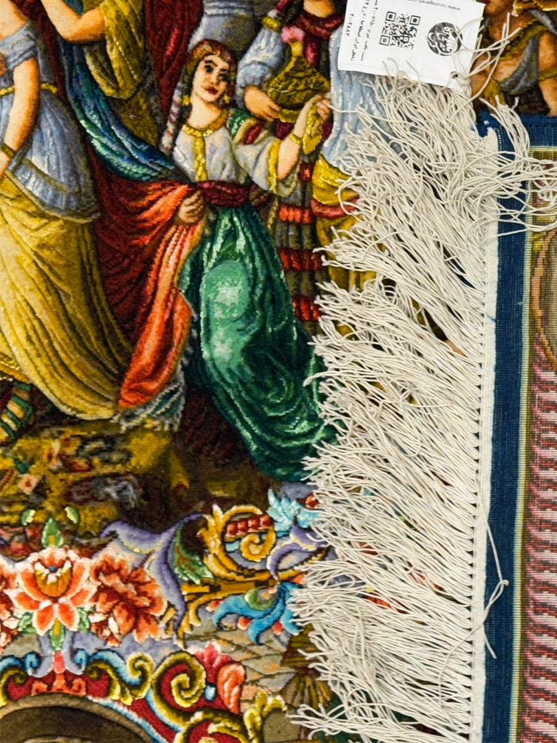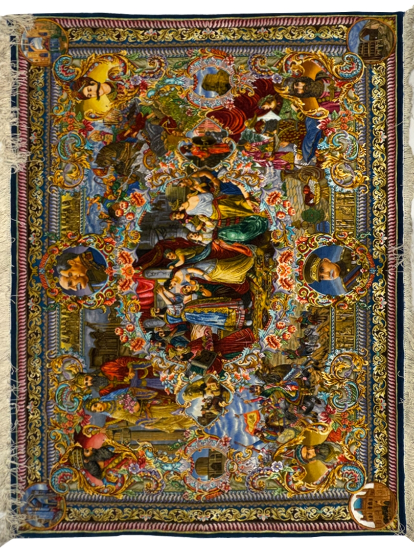 دست بافت تبريز 150*200 مستطيل شاهان ايران اصطلاحا 60 رج کرک و ابريشم الوان ابي کاربني 7 Kg