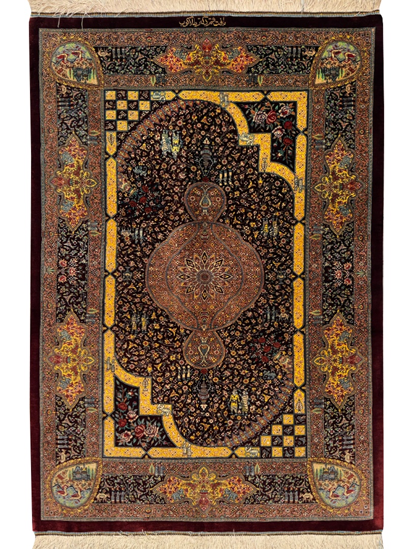 فرش شادکام > فروشگاه > فرش دستباف > دست بافت مستطیل طلاکوب 70 رج تمام ابریشم کد 2003807