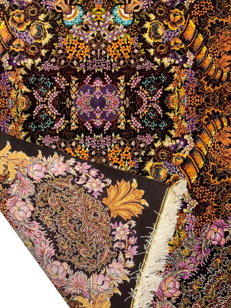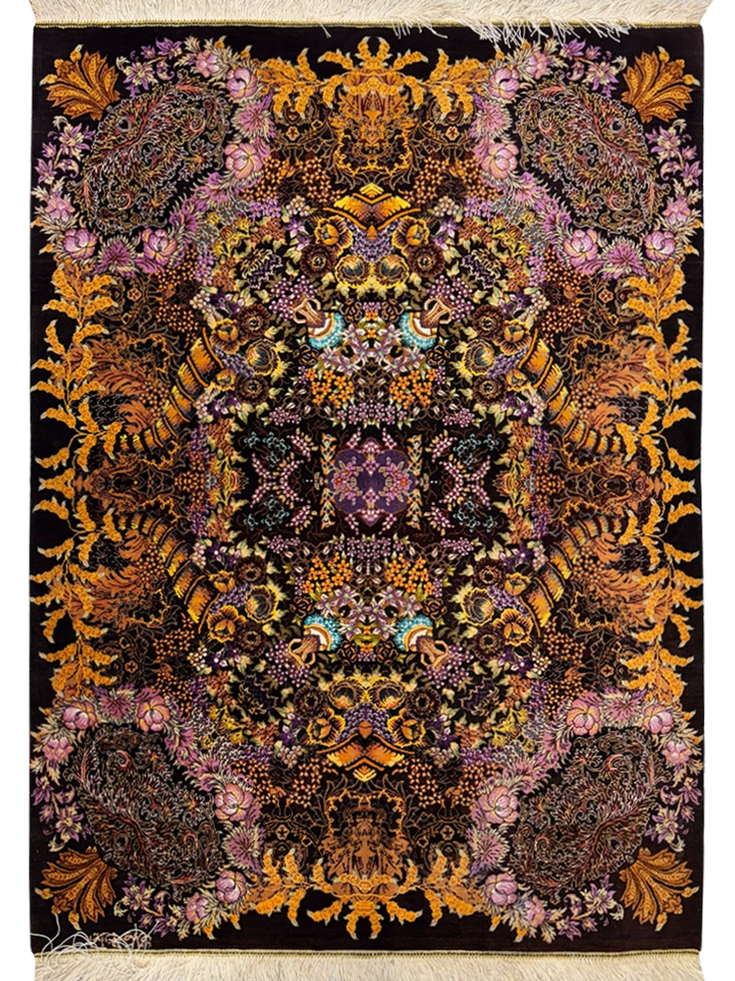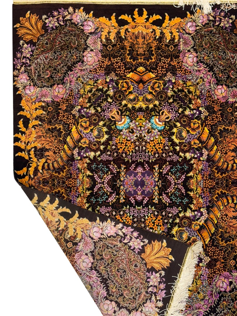 دست بافت قم 80*120 مستطيل نقشه غلط 70 رج تمام ابريشم قهوه‌اي قهوه ايي 2 Kg