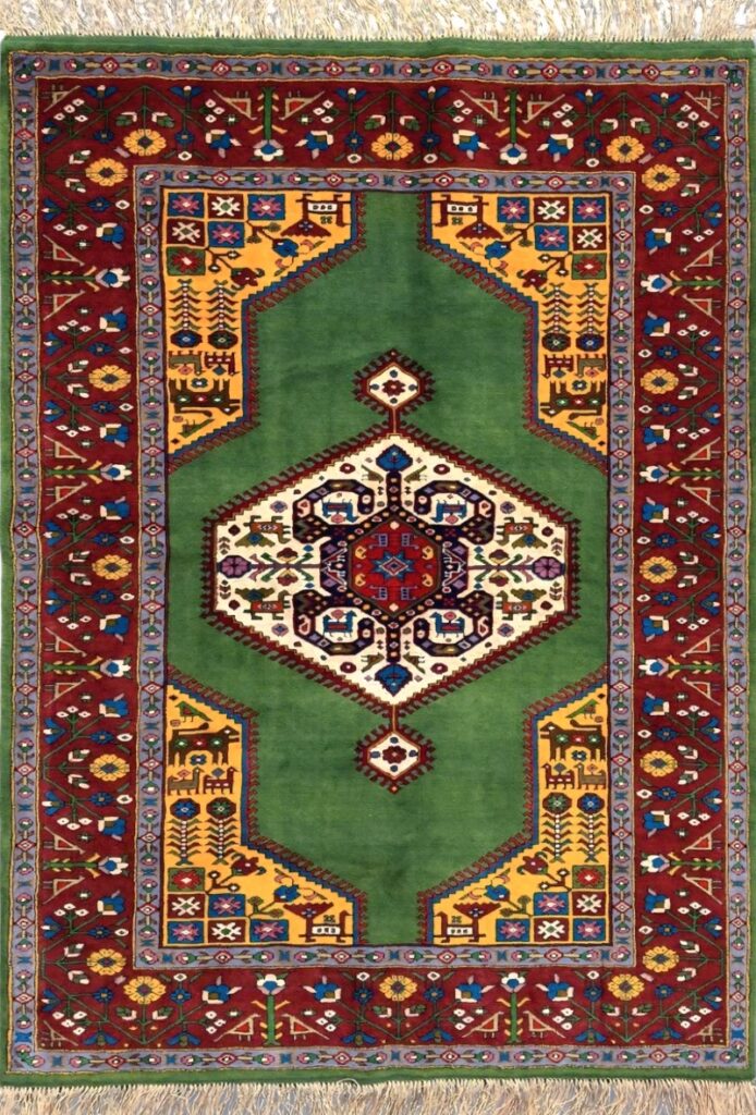 دست بافت قشقايي 100*150 مستطيل کف ساده کرمان 40 رج پشم سبز لاکي 8 Kg