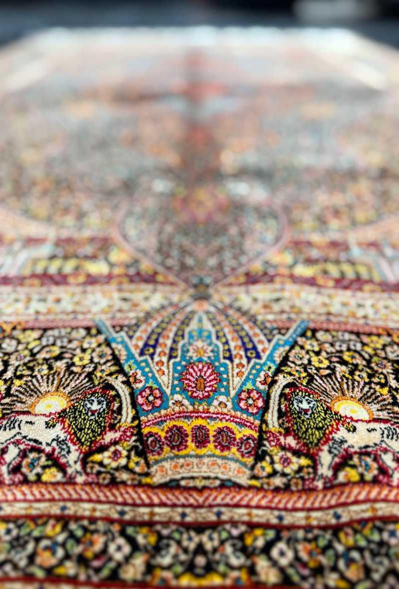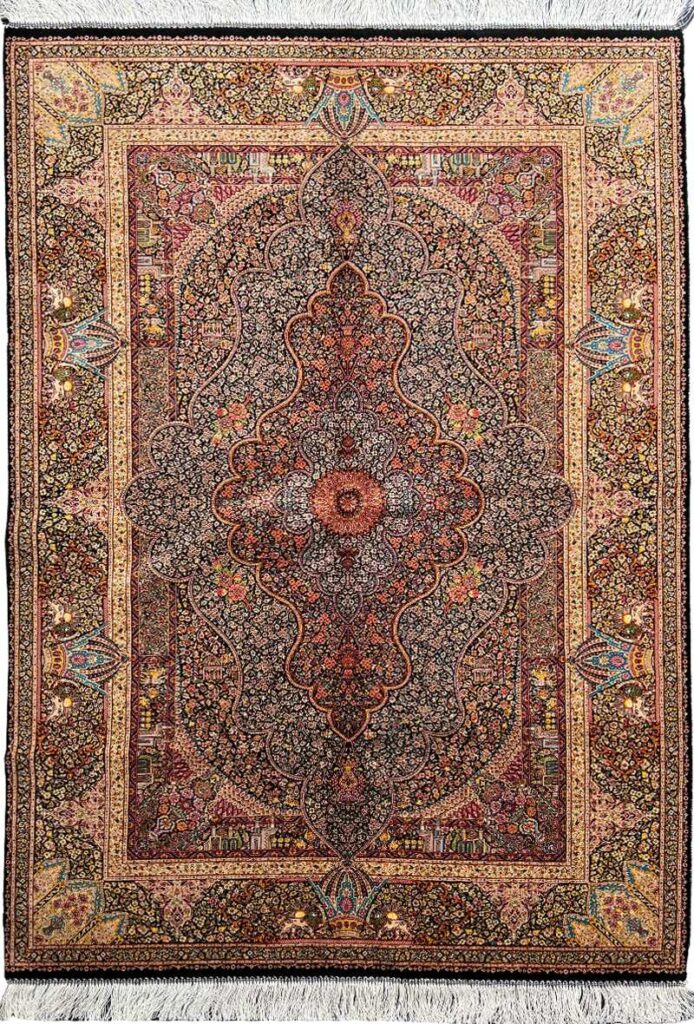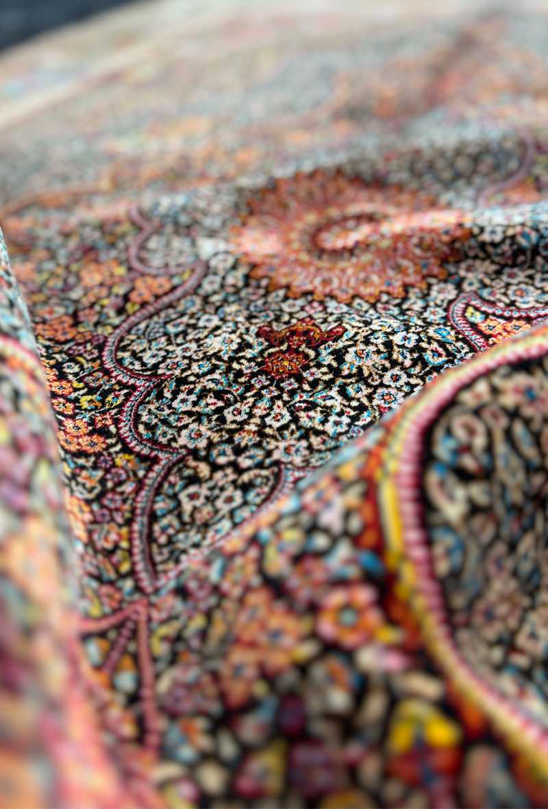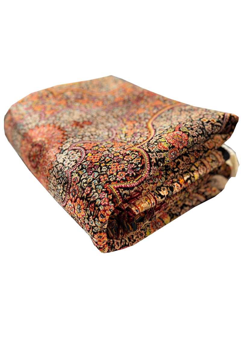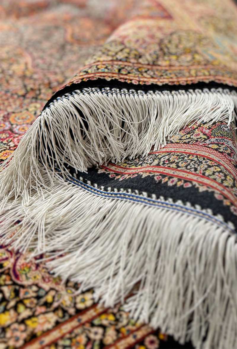 ربات بافت قم 150*220 مستطيل جمشيدي 70 رج ابريشم و بنبوسيلک مشکي مشکي 25 Kg