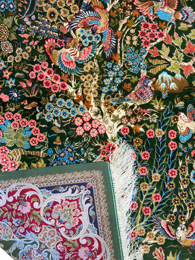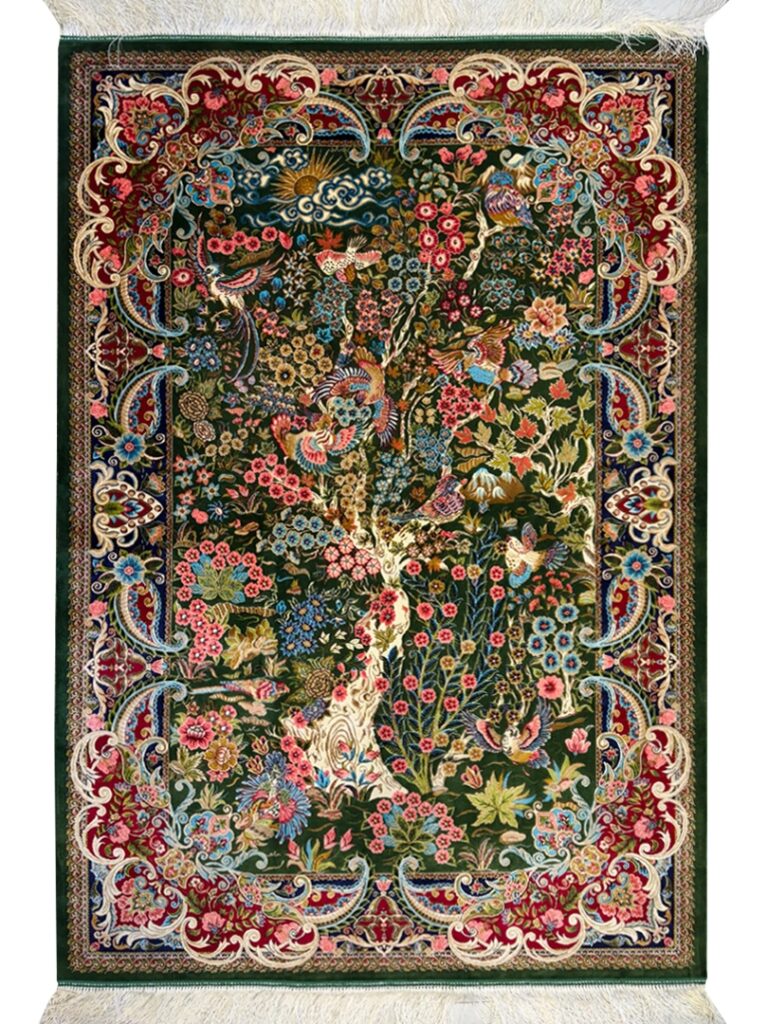 فرش شادکام > فروشگاه > فرش ربات بافت > ربات بافت مستطیل درخت زندگی 70 رج پشم و بنبوسیلک کد 2003718