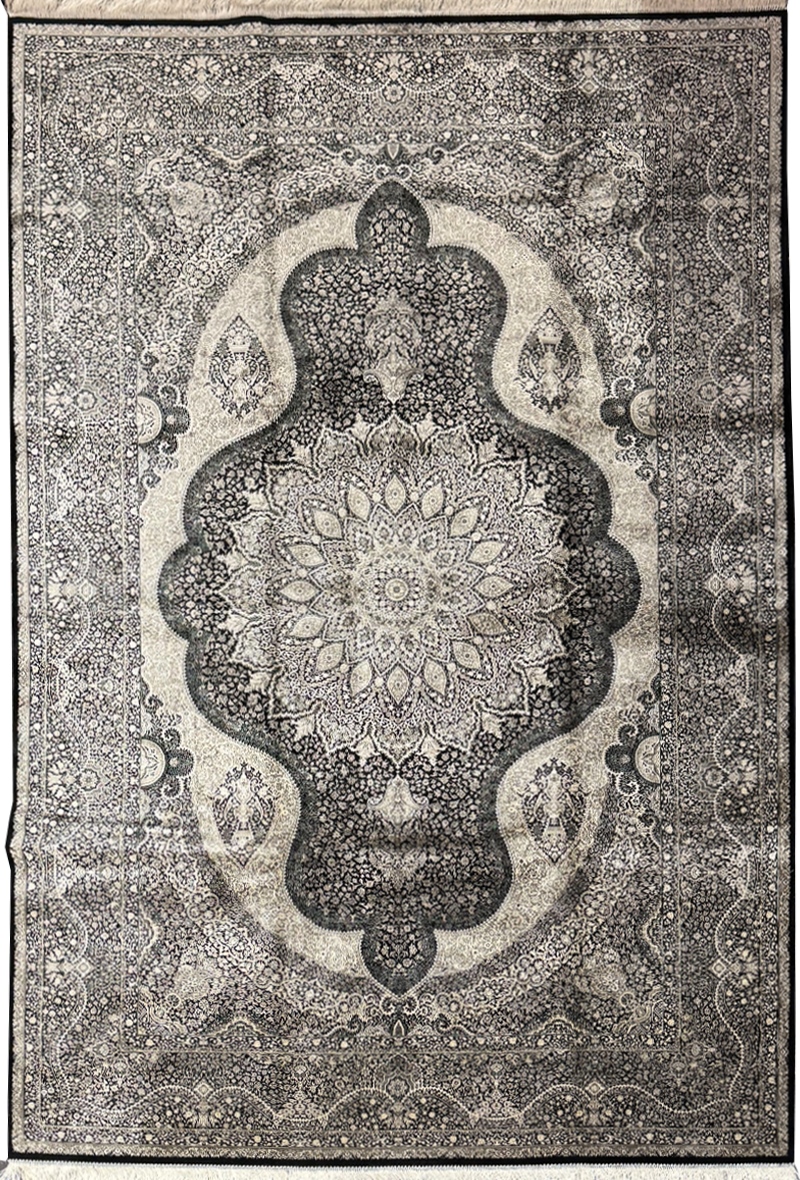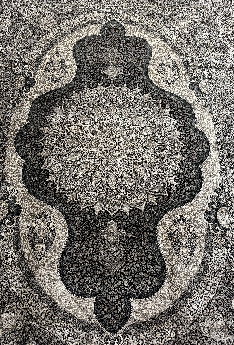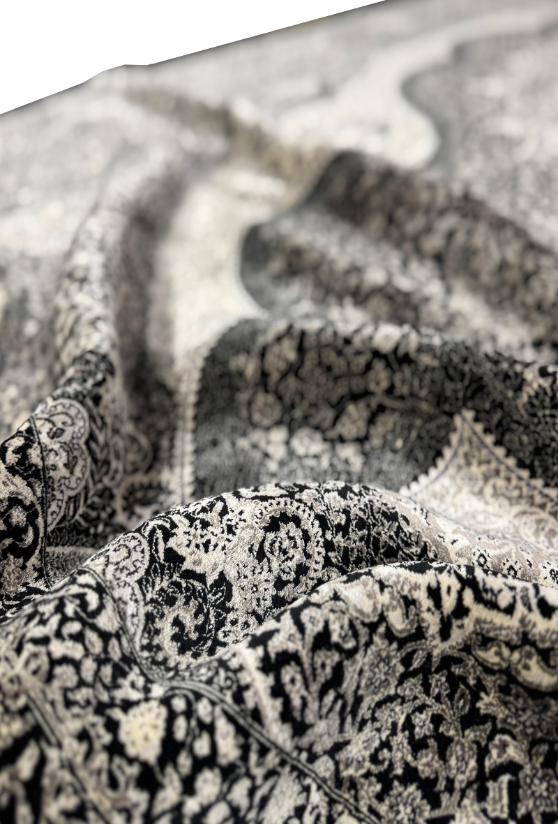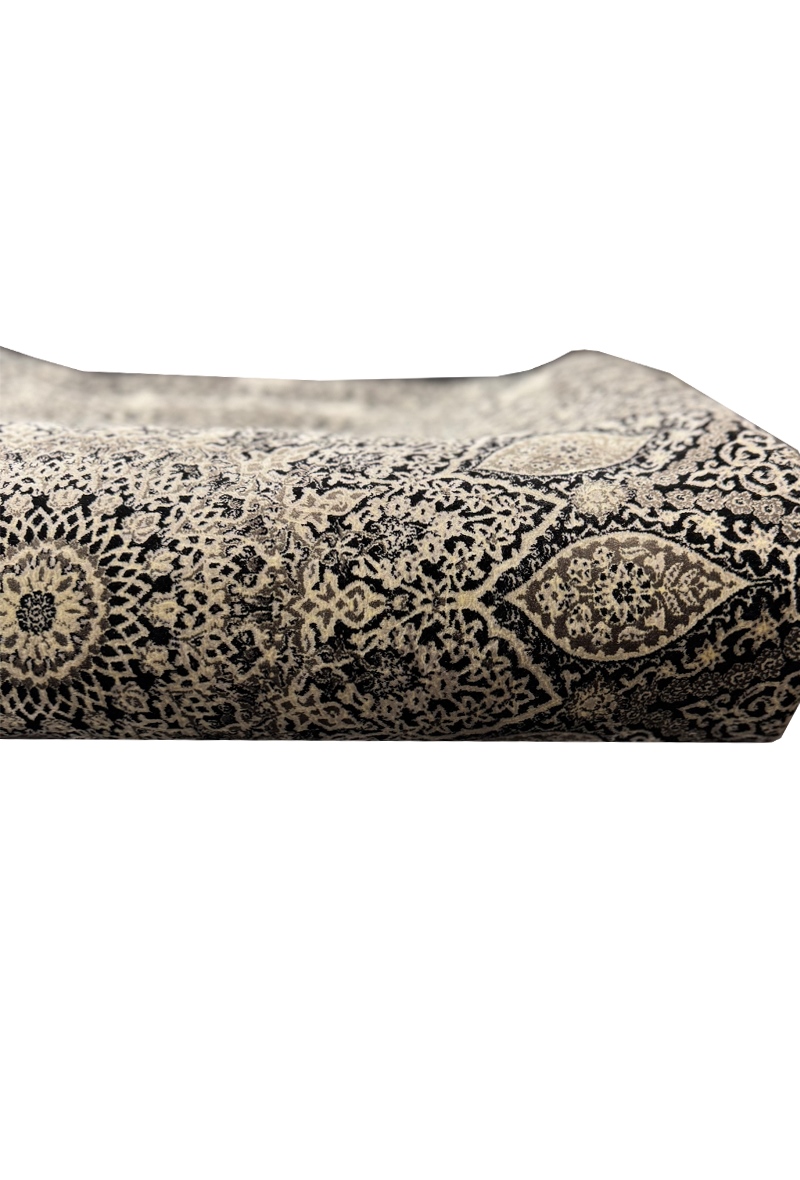 ربات بافت قم 200*300 مستطيل لچک ترنجي 70 رج پشم و بنبوسيلک مشکي مشکي 25 Kg