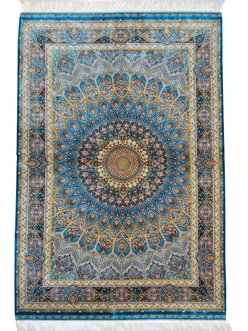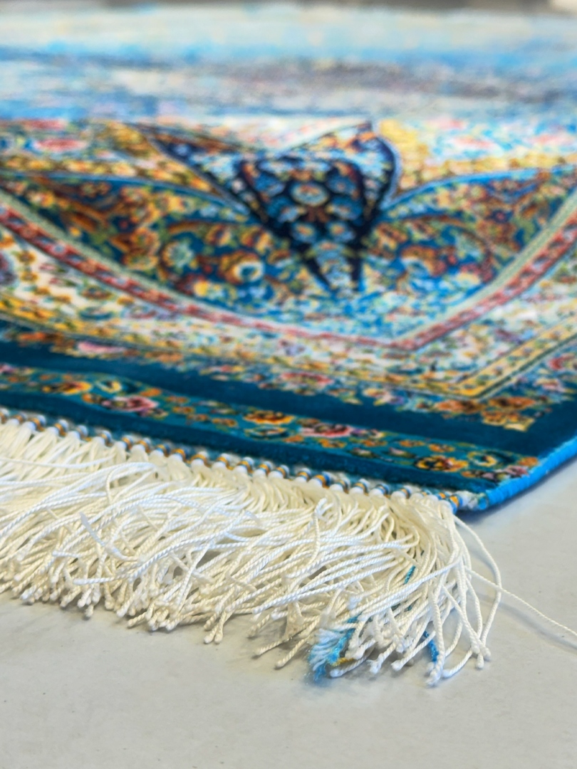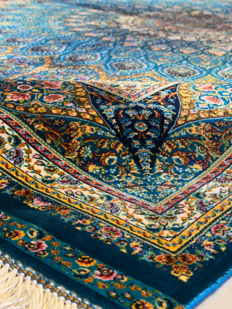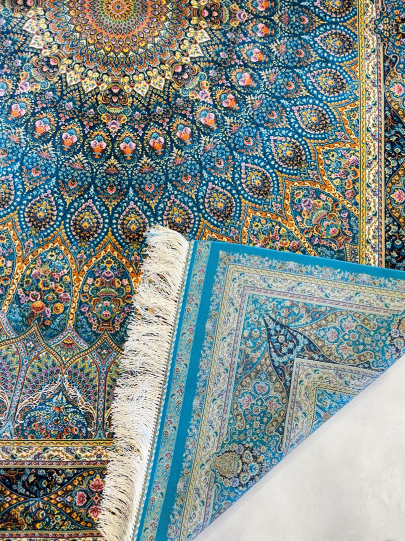 ربات بافت قم 150*225 مستطيل گنبد شيخ لطف الله 70 رج ابريشم و بنبوسيلک ابي اقيانوسي ابي اقيانوسي 8 Kg