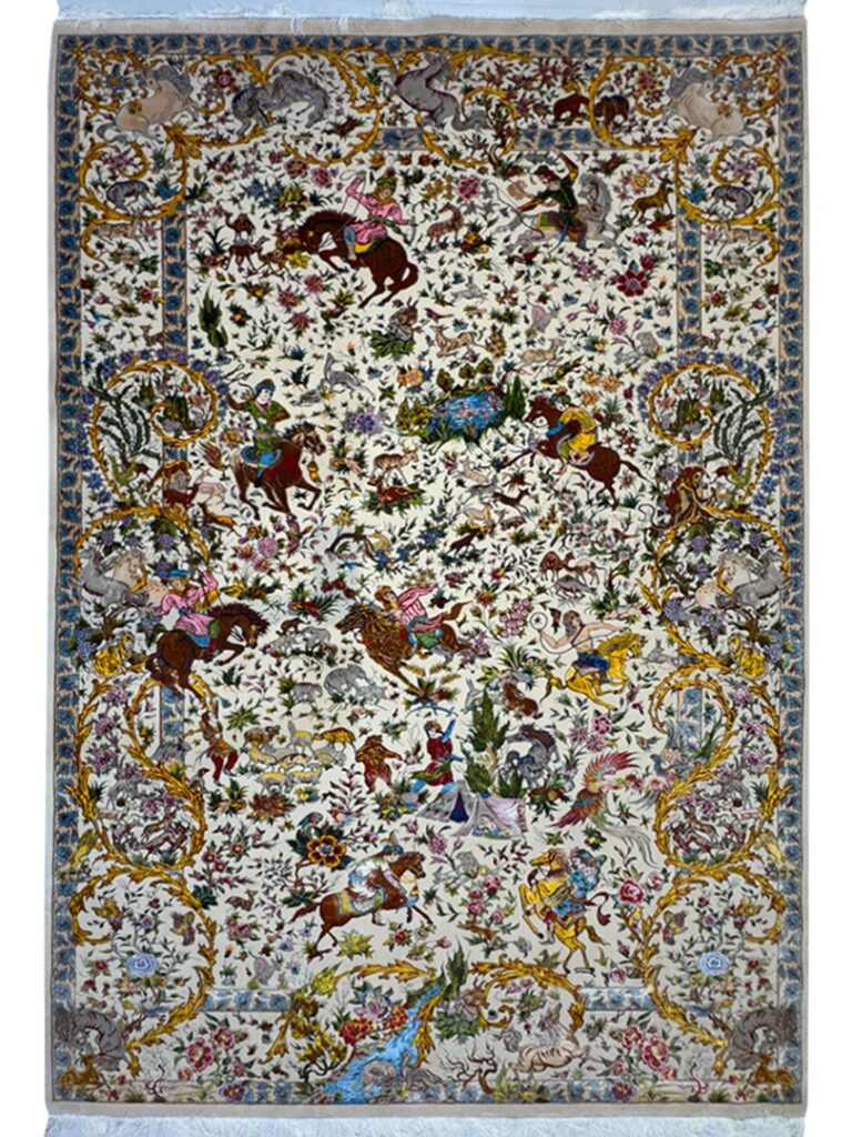 فرش شادکام > فروشگاه > فرش ربات بافت > فرش بافت مستطیل شکارگاه 70 رج پشم و ابریشم کد 2003754