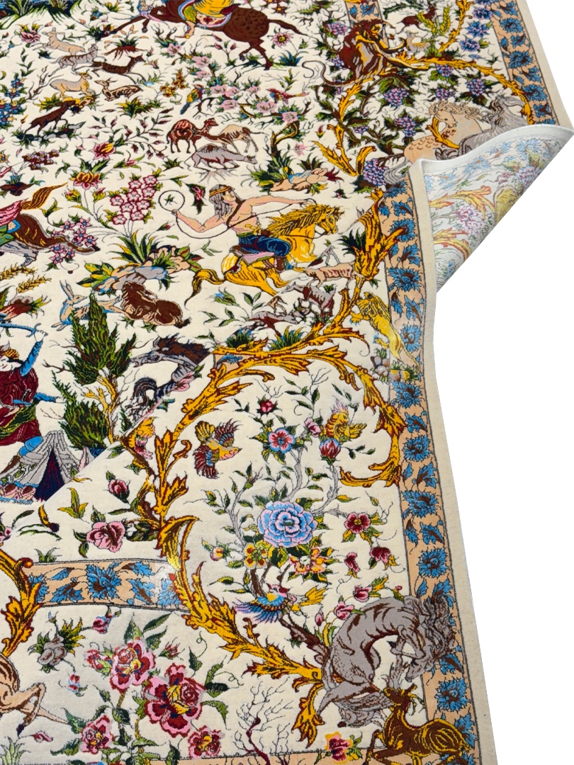 فرش شادکام > فروشگاه > فرش ربات بافت > فرش بافت مستطیل شکارگاه 70 رج پشم و ابریشم کد 2003754