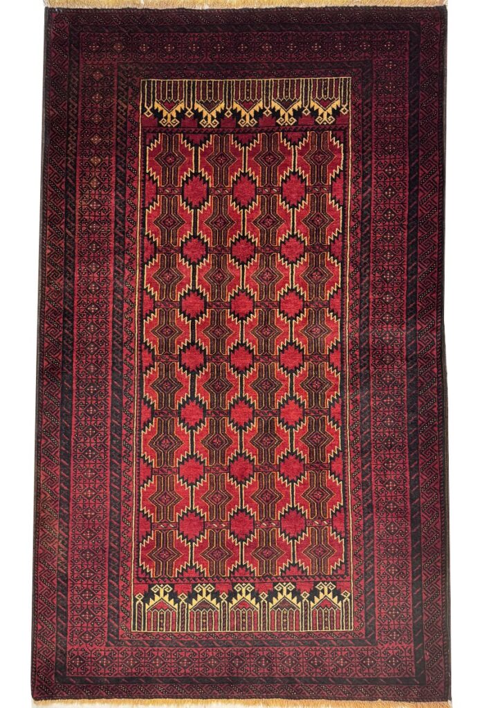 دست بافت بلوچ 190*110 مستطيل * بلوچ 30 کرک مرينوس قرمز لاکي لاکي سرمه اي 8 Kg شادکام