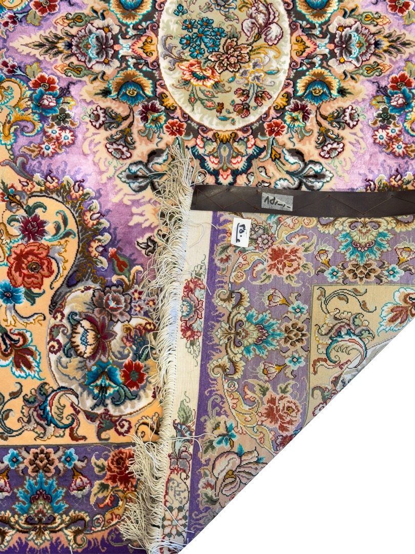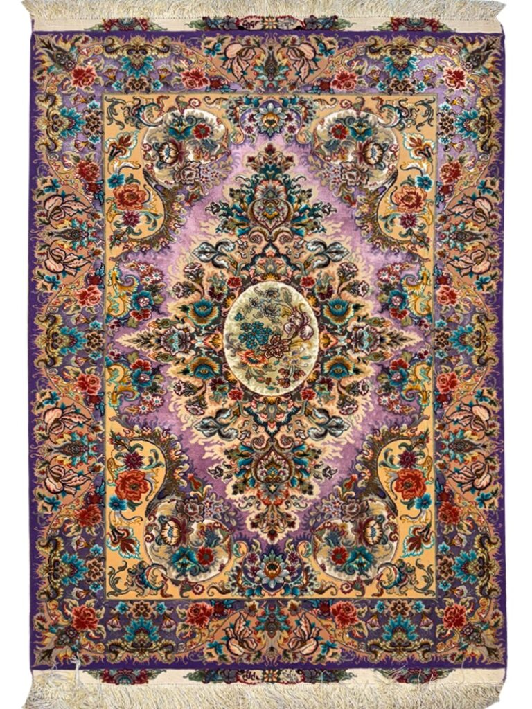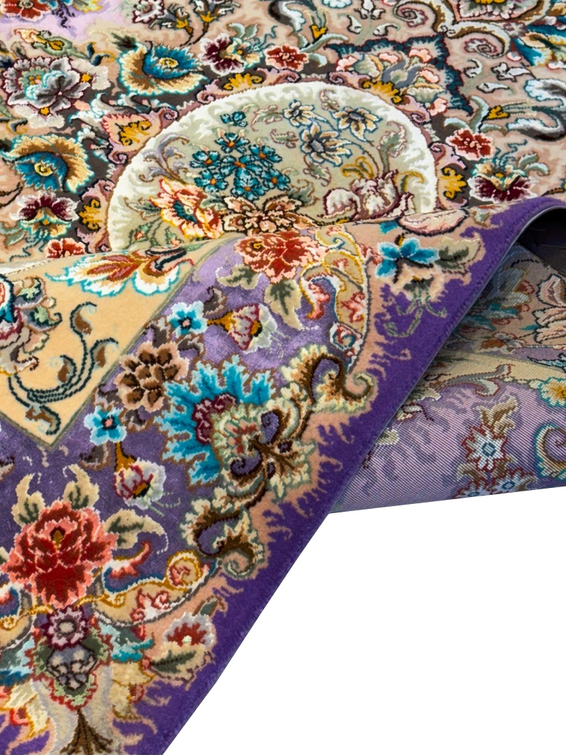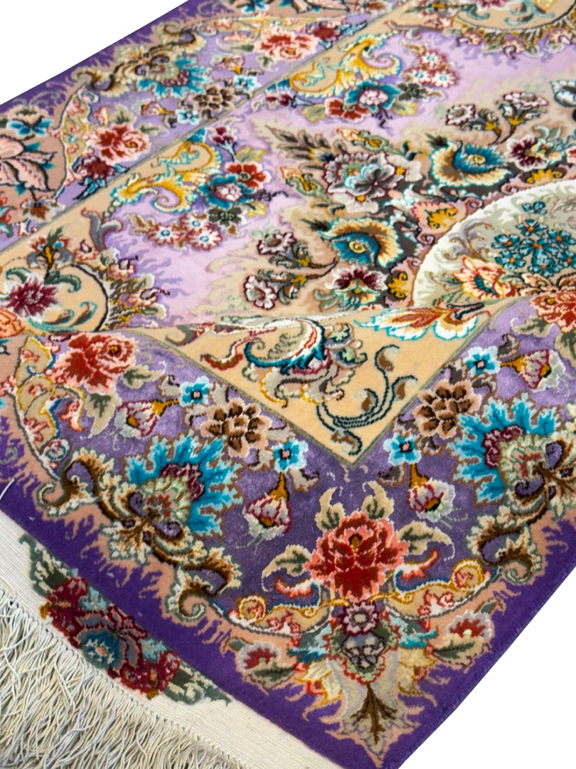 دست بافت تبريز 100*150 مستطيل خطيبي 50 رج دو کف ابريشم بنفش بنفش 5 Kg