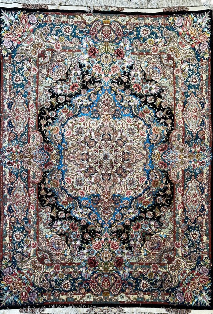 فرش دست بافت تبریز مستطیل سالاری 60 رج کرک و ابریشم کد 2001833