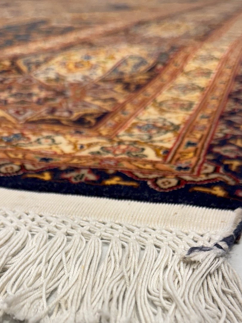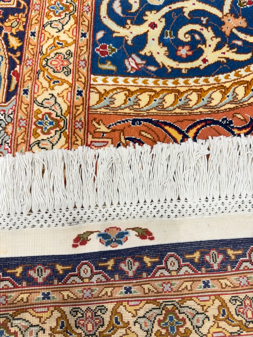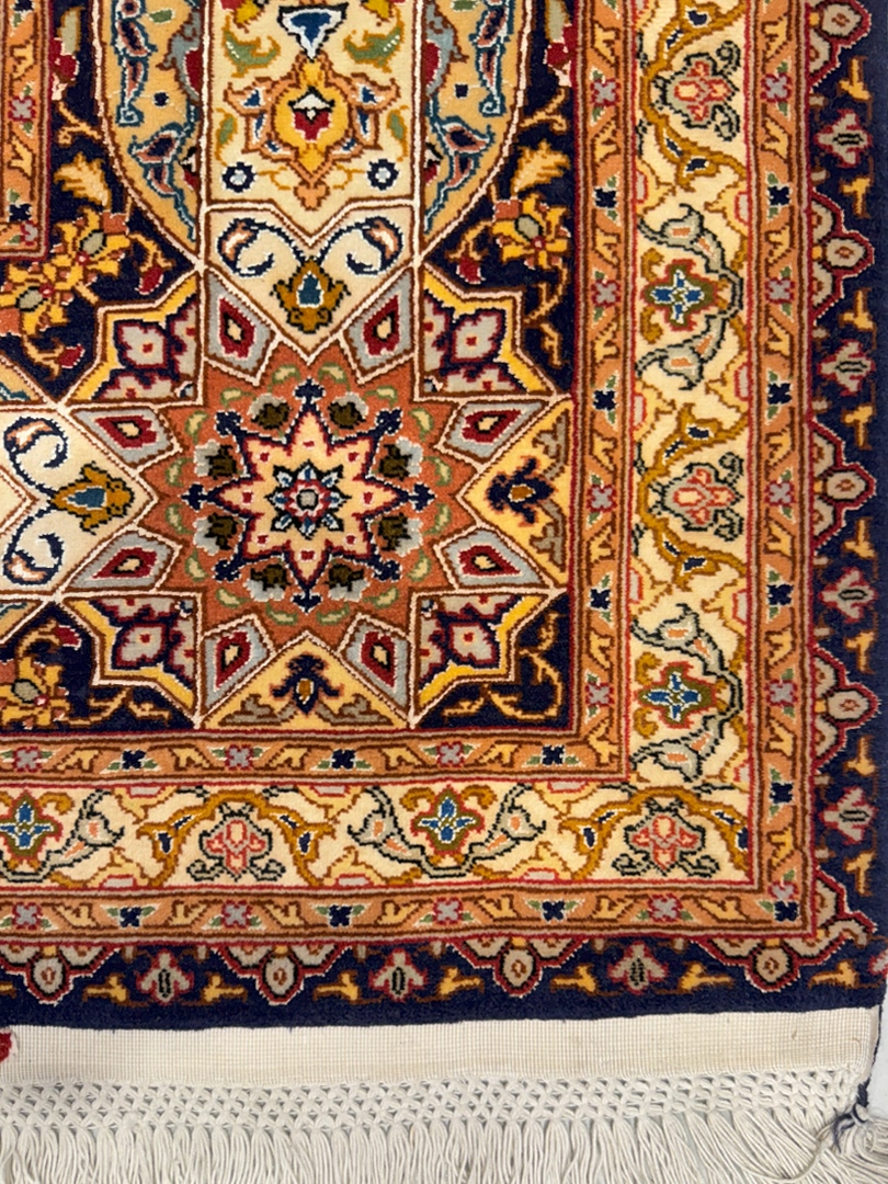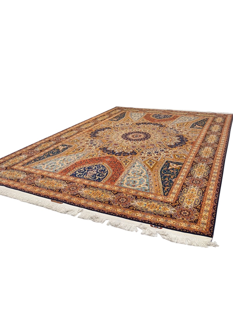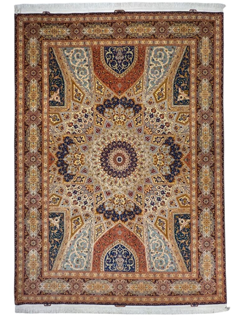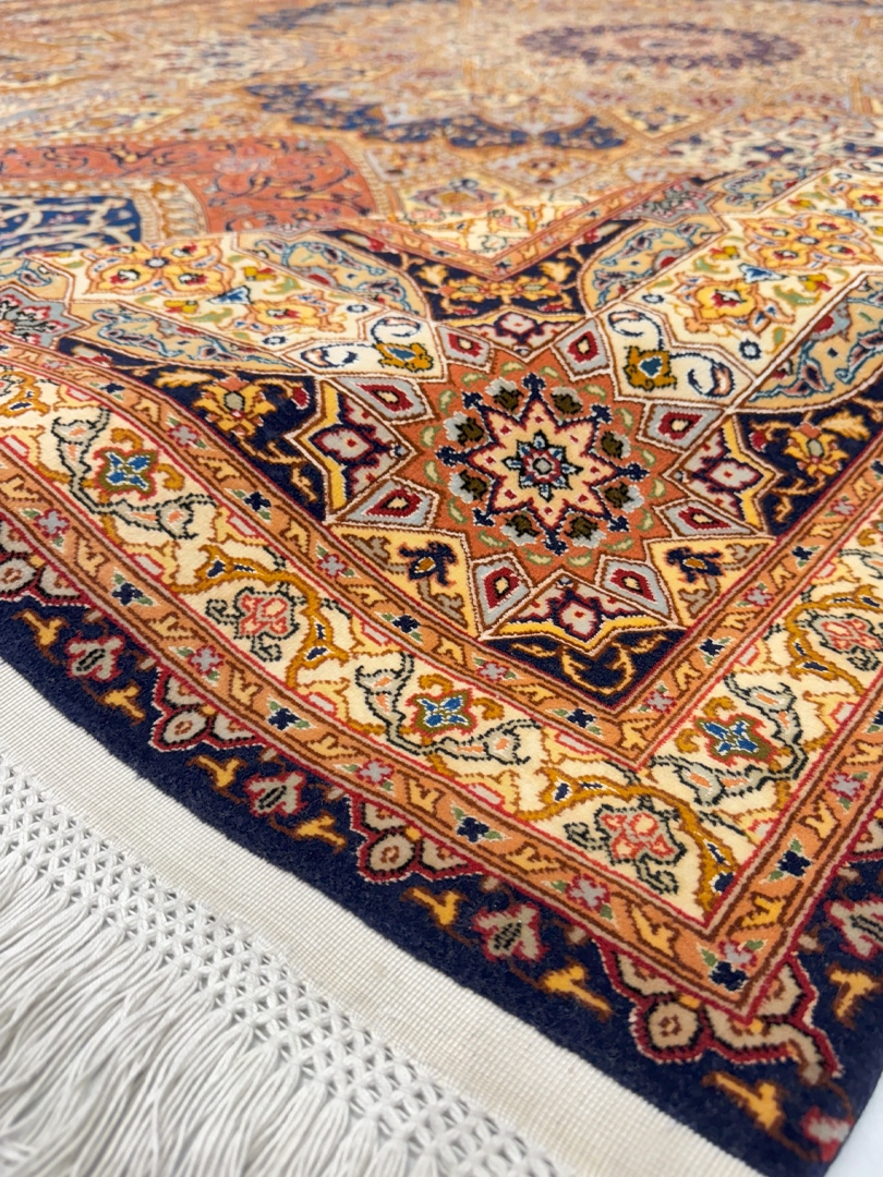 دست بافت تبريز ويژه 250*350 مستطيل گنبدي 50 رج تمام ابريشم کرم کرم 20 Kg