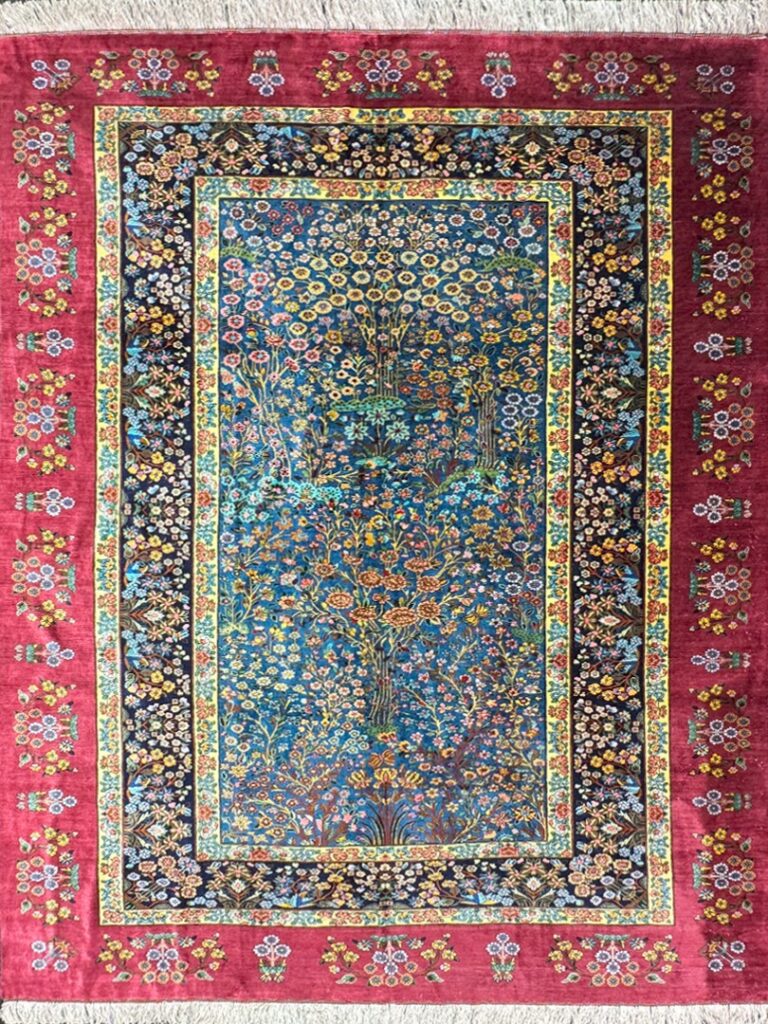 فرش دست بافت خراسان تمام ابریشم طرح باغ بهشت 60رج تقریبی کد 2000055
