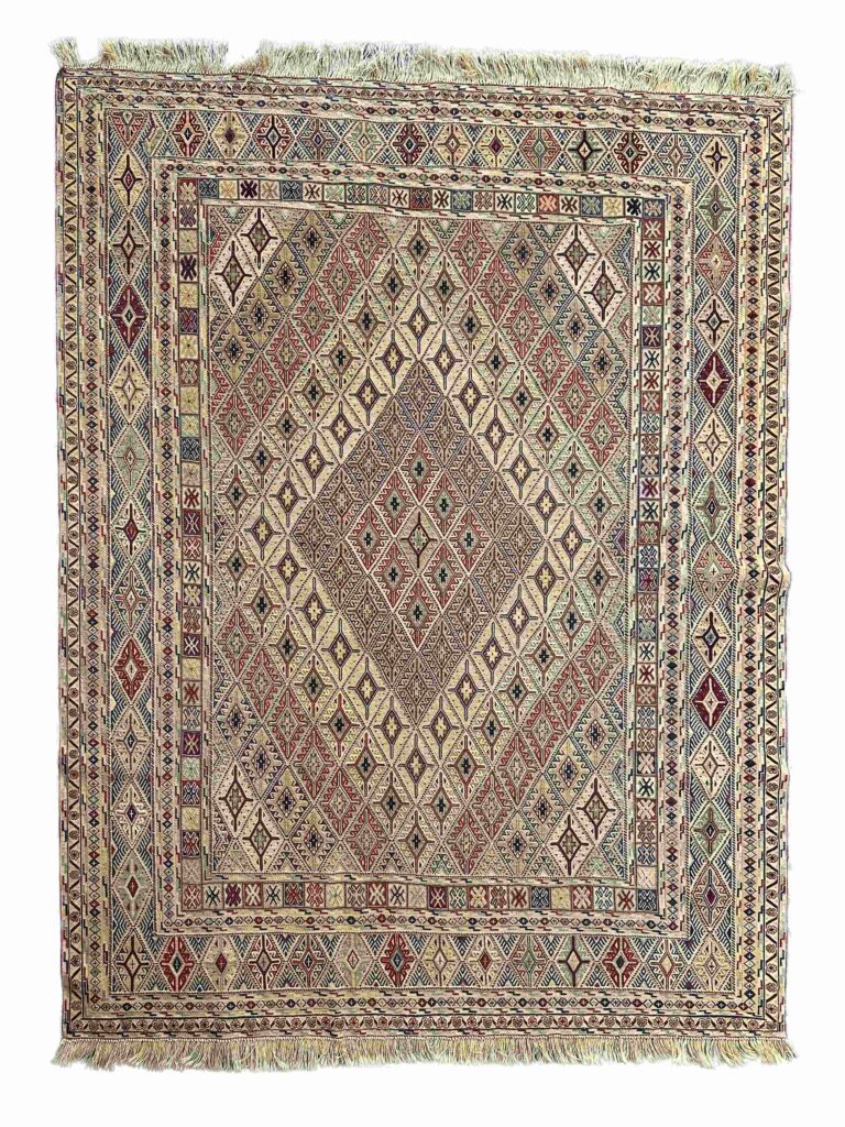 دست بافت گليم 200*220 مستطيل خشتي 35 پنبه کرم وزرد کرم و طلايي 8 Kg