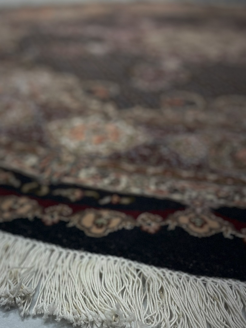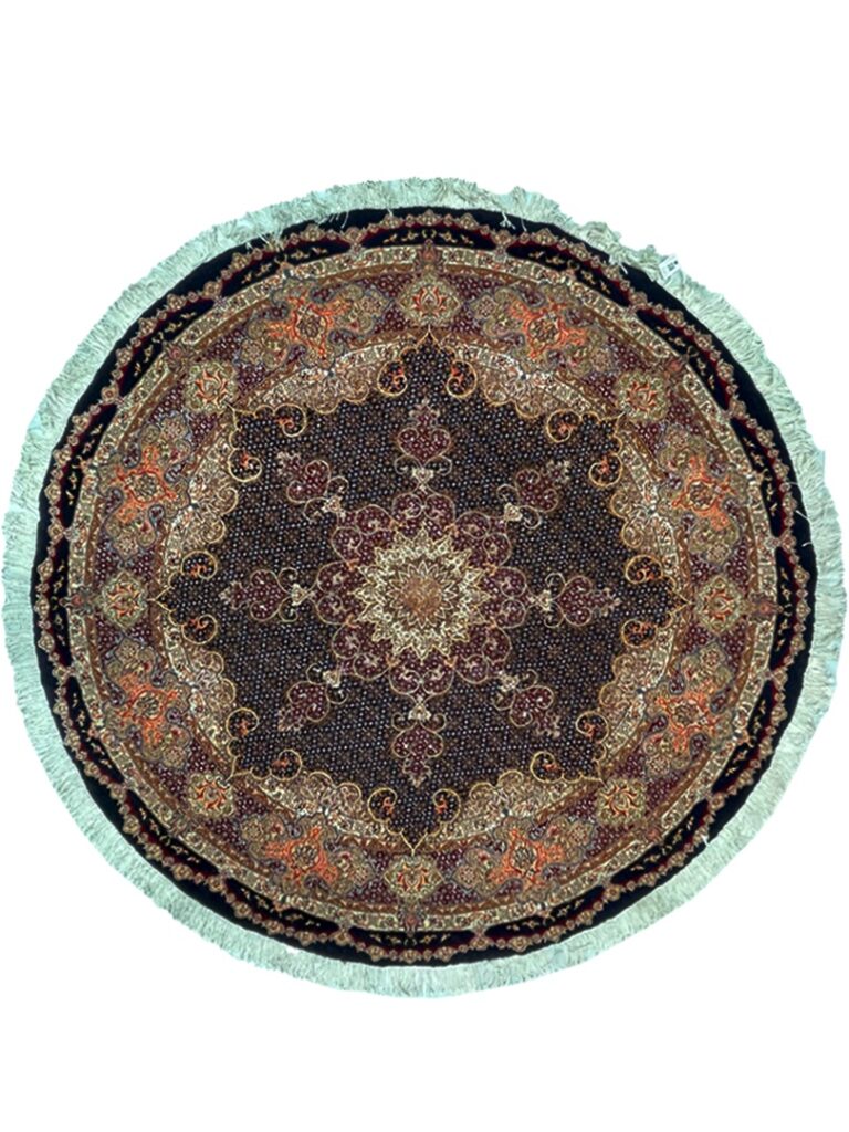 دست بافت تبريز 200*200 دايره ريز ماهي 50 رج -چله نخ مشکي شرابي 15 Kg
