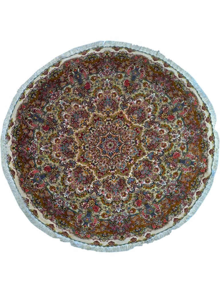 دست بافت تبريز 200*200 دايره صفي قلم 60 رج کرک و ابريشم کرم مسي مسي 8 Kg