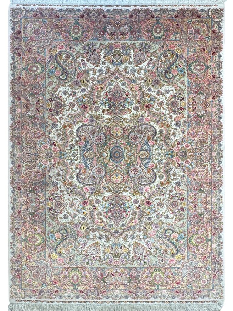 دست بافت تبريز 200*300 مستطيل سالاري 70 رج کرک و ابريشم کرم خردلي 20 Kg