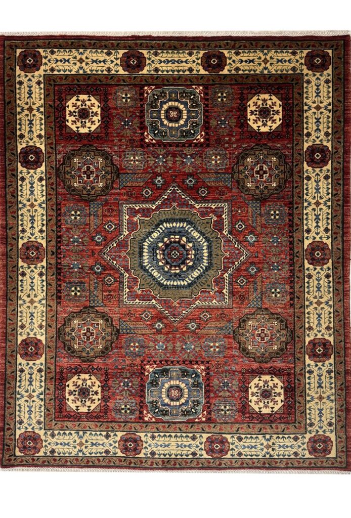 دست بافت سلطان اباد 150*225 مستطيل هريس 40 رج کرک براق قرمز لاکي کرم 15 Kg