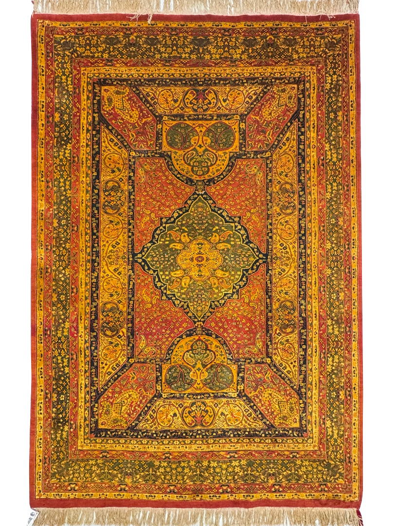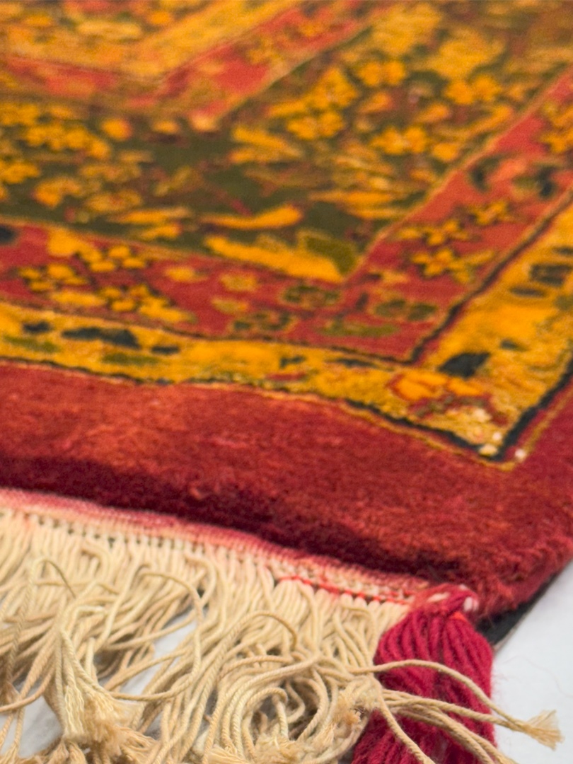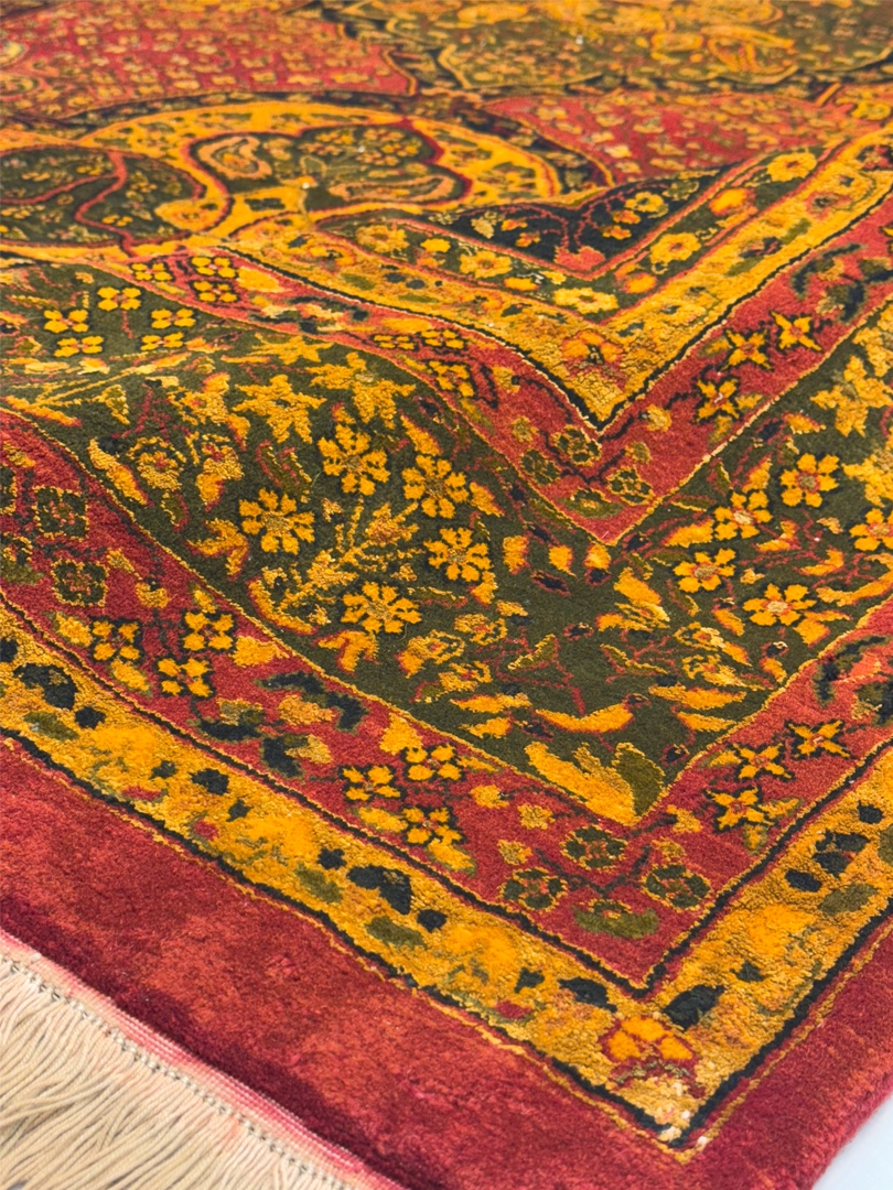 دست بافت عشايري 185*270 مستطيل گلابتون 40 رج پشم سبز لجني قرمز سبز 25 Kg