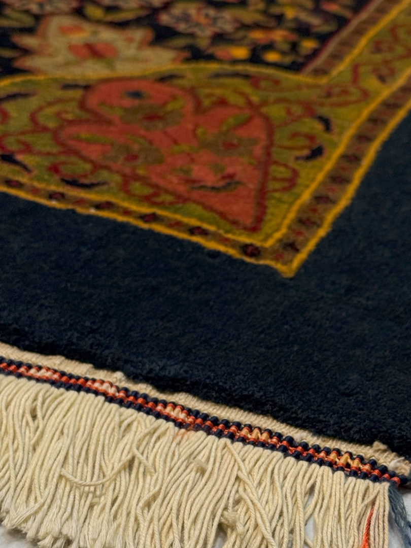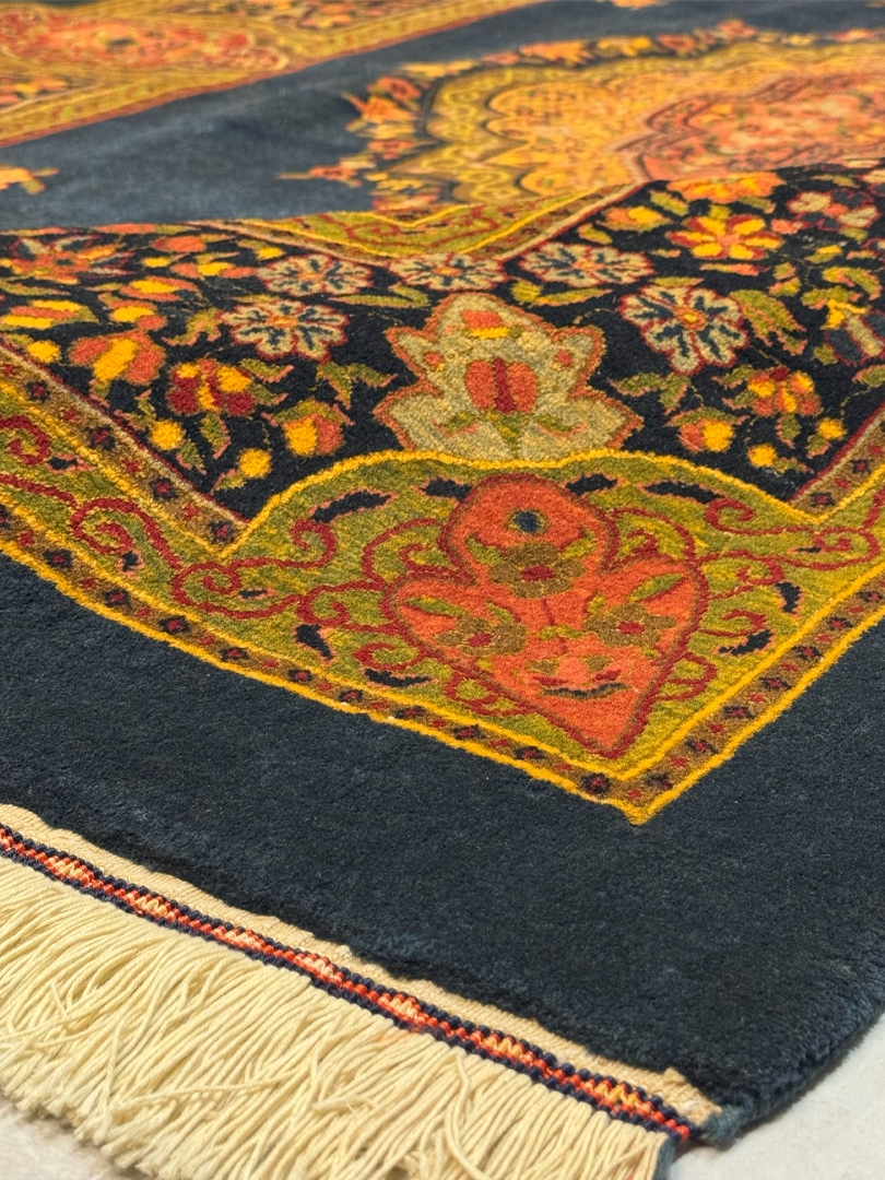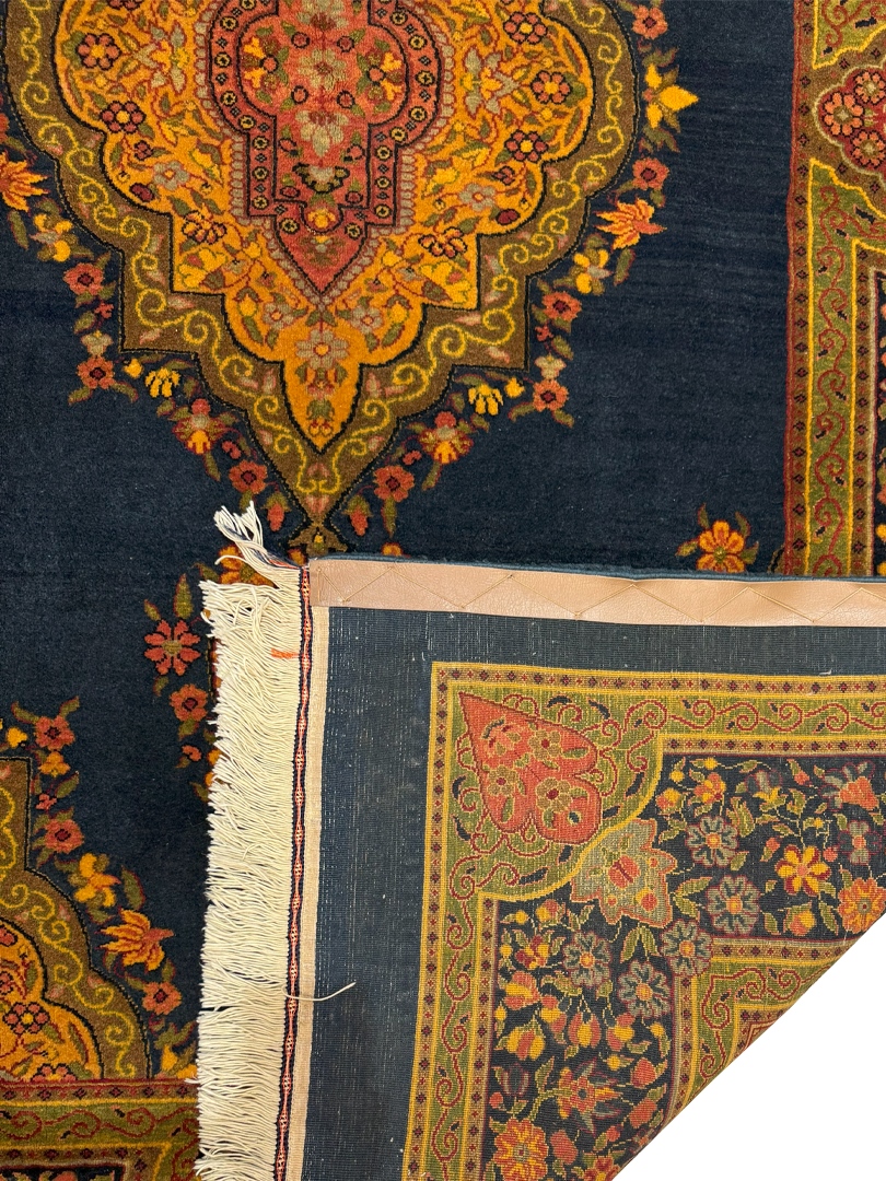 دست بافت قشقايي 150*200 مستطيل کف ساده کرمان 40 رج پشم سرمه اي سير لاکي سرمه اي 12 Kg