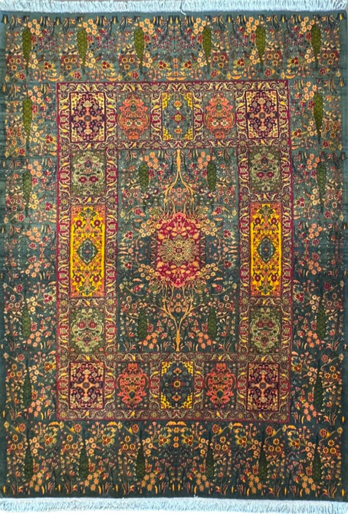 دست بافت قشقايي 200*300 مستطيل بيجار کردستان 40 رج پشم سبز آبي سبز 30 Kg