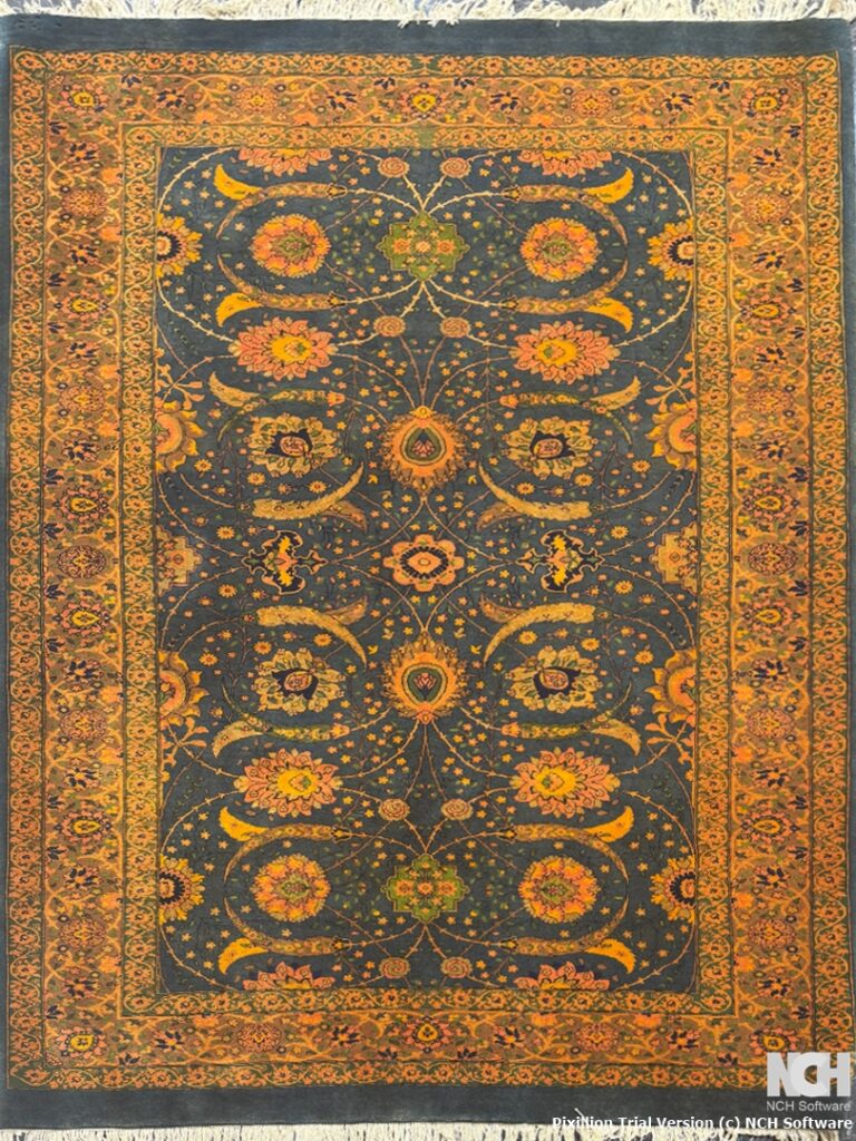 قشقايي 200*300 مستطيل داسي 40 پشم دست ريس سورمه اي و کرم بژ و طلايي 30 Kg