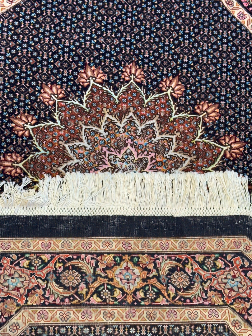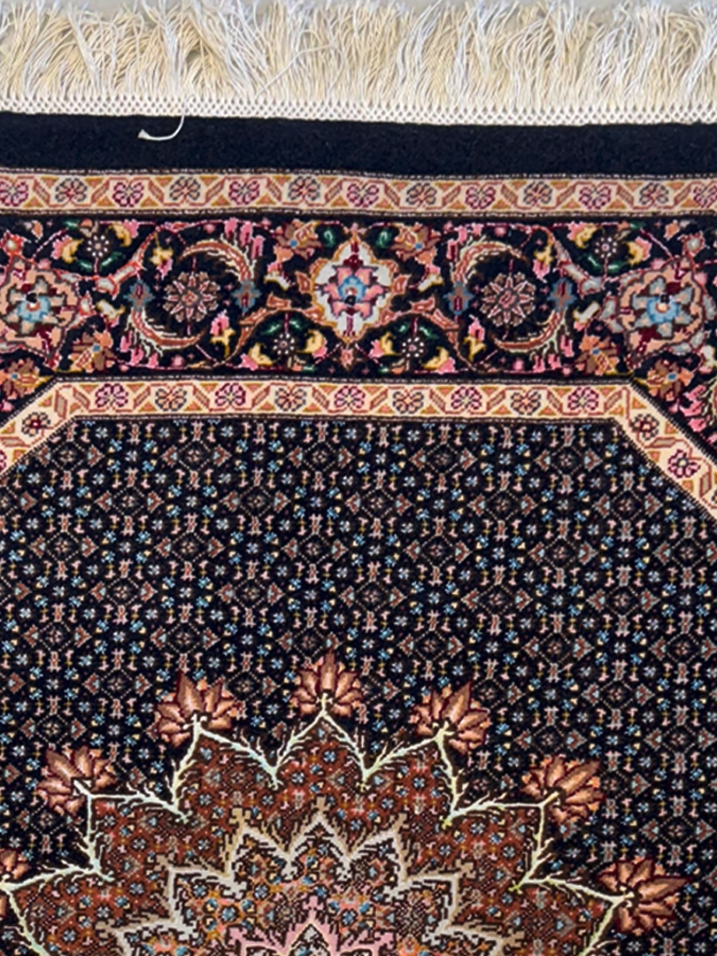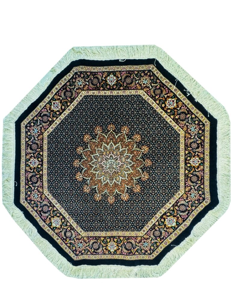 دست بافت تبريز 150*150 مربع ريز ماهي عبدالهي 40 رج کرک و ابريشم مشکي مشکي 6 Kg