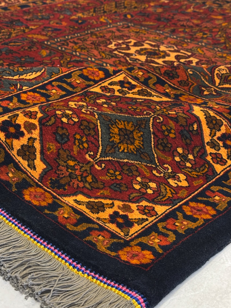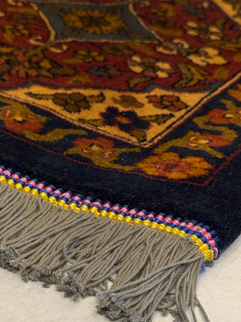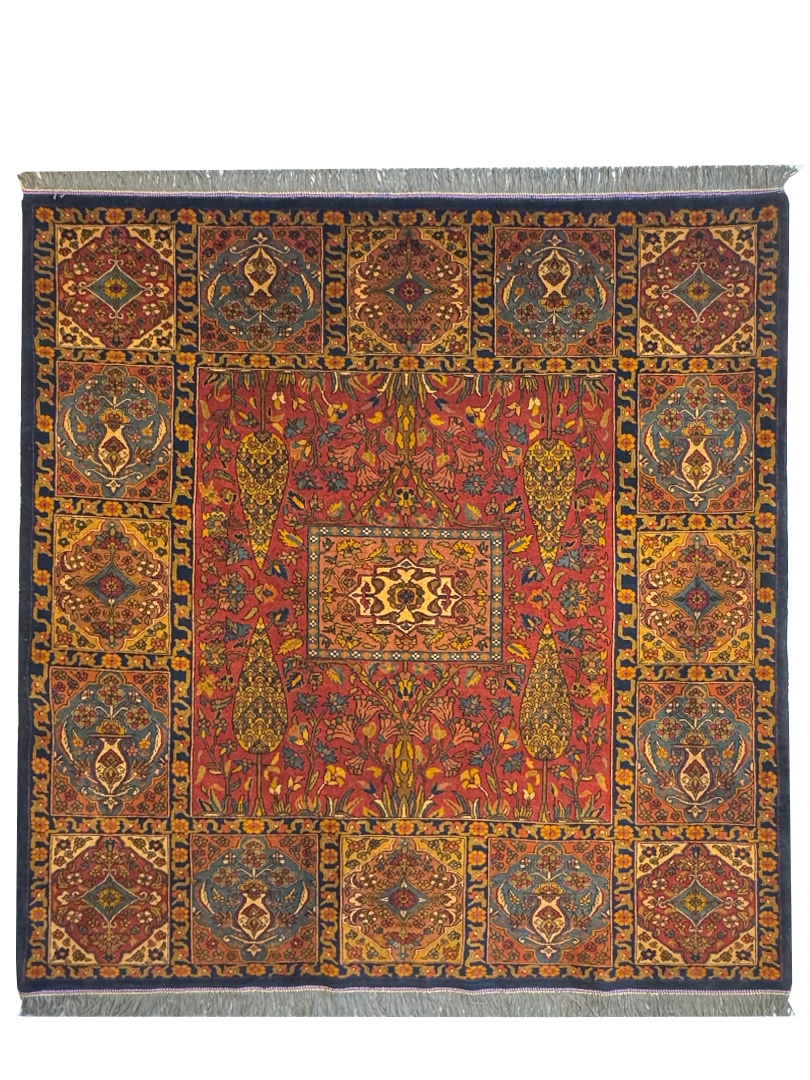 دست بافت عشايري 200*200 مربع سروي ترنجي 40 رج پشم لاکي آبي تيره 15 Kg