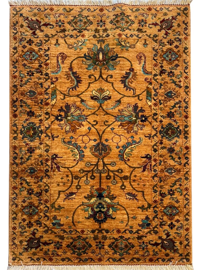 دست بافت سلطان اباد 155*106 مستطيل افشان اسليمي 40 رج پشم دست ريس نخودي نخودي الوان 5 Kg