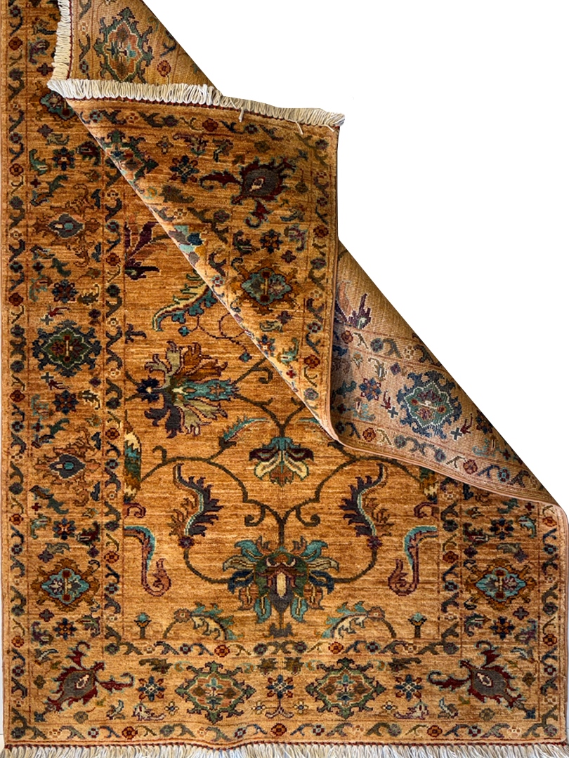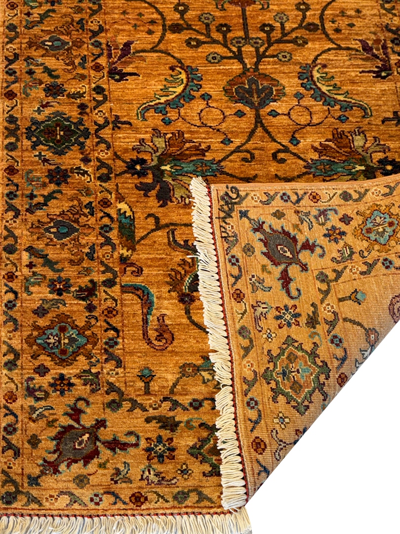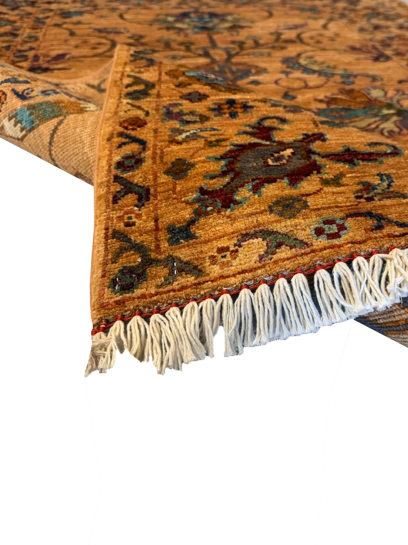 دست بافت سلطان اباد 155*106 مستطيل افشان اسليمي 40 رج پشم دست ريس نخودي نخودي الوان 5 Kg
