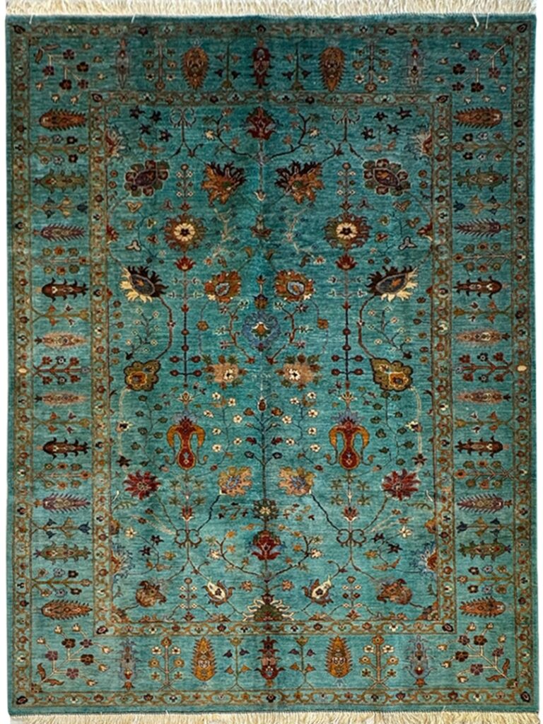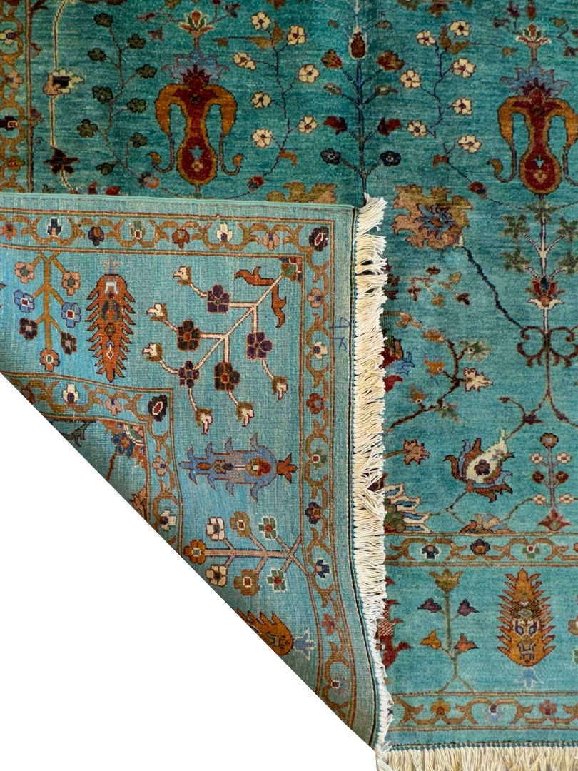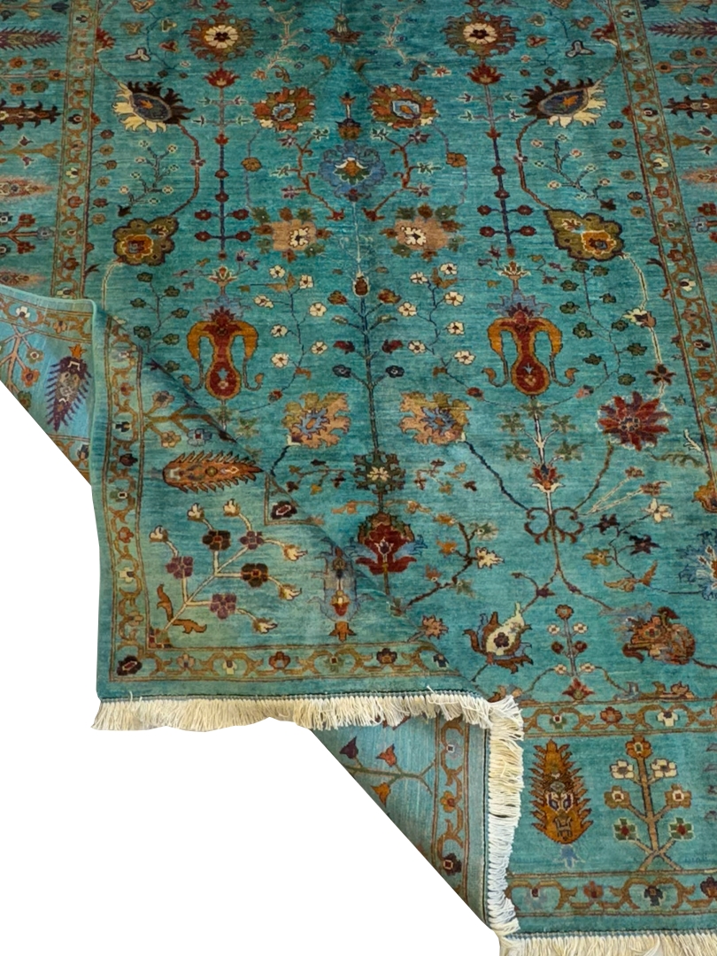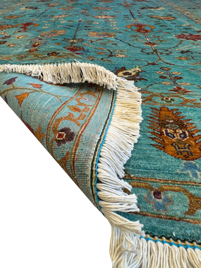 دست بافت سلطان اباد 200*300 مستطيل افشان امريکايي 35 رج پشم ابي فيروزه ايي فيروزه اي 20 Kg
