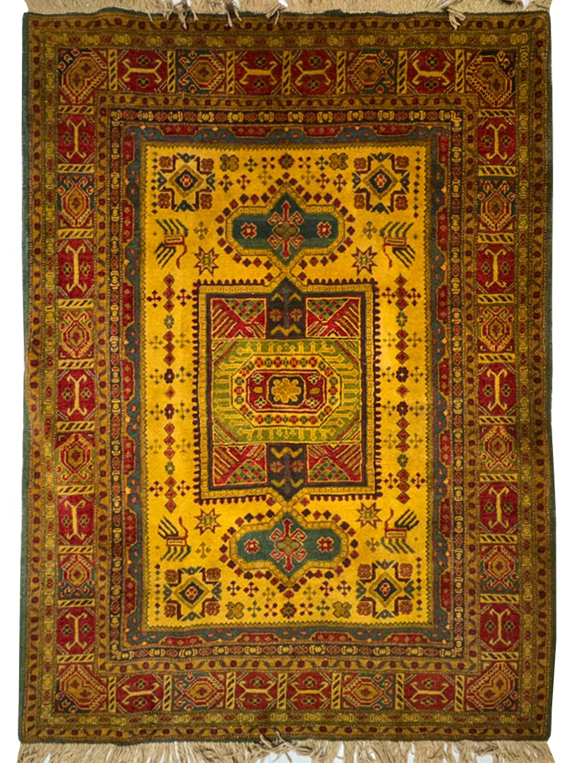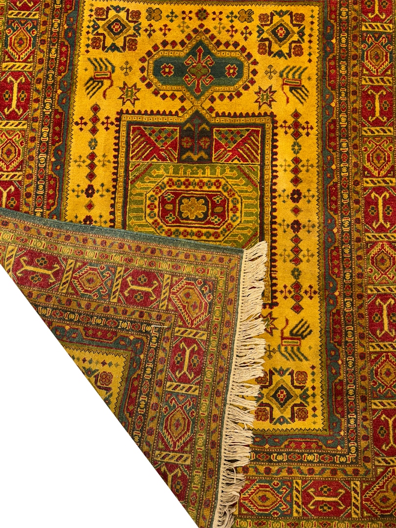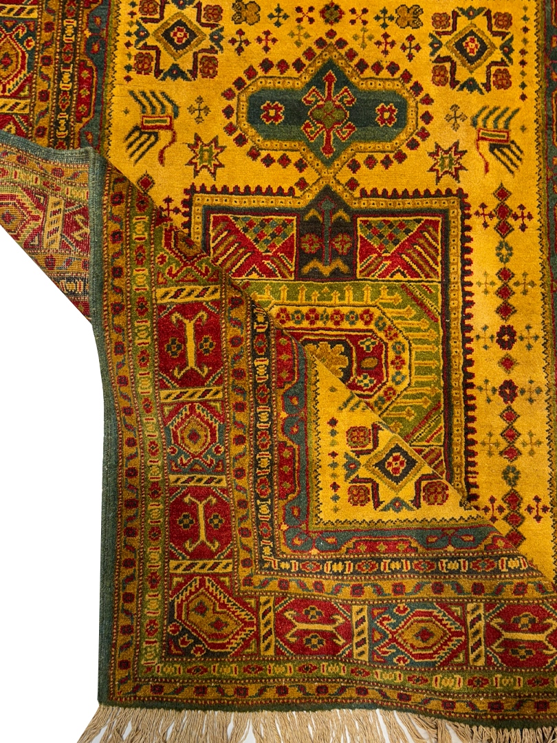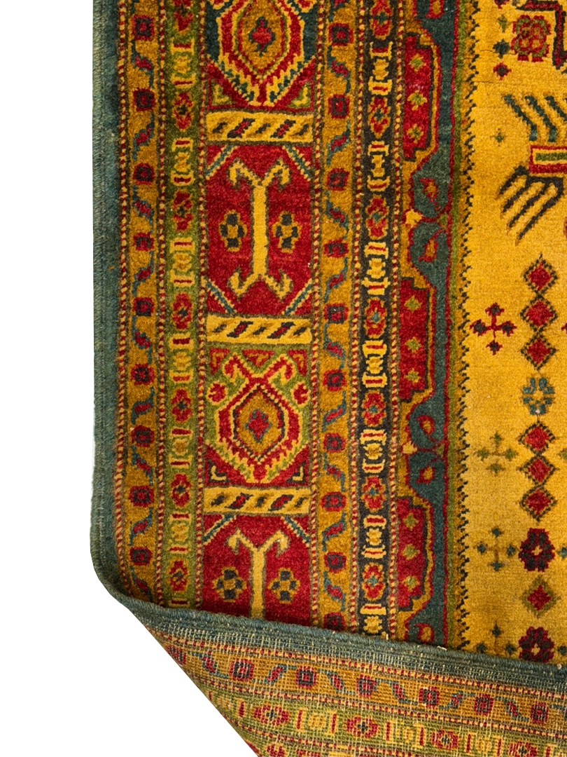 دست بافت قشقايي 150*200 مستطيل ترنج طولي 30 پشم دست ريس کرم وزرد لاکي 15 Kg